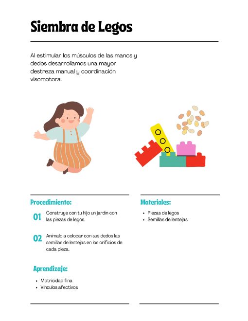 A través de las fichas se presentan el empleo de diversos materiales, cuyo propósito principal es invitar a la curiosidad, reflexión y coordinación.