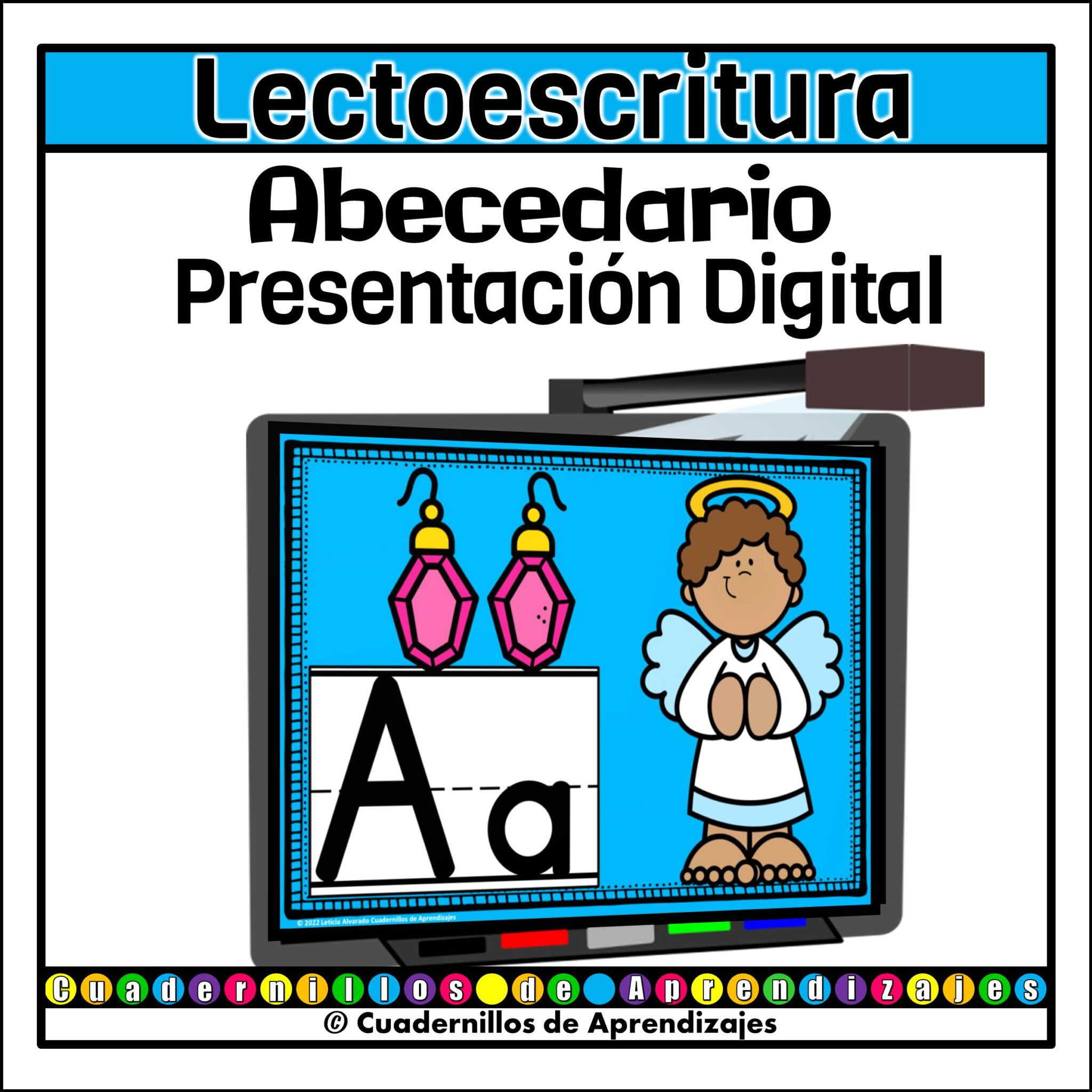 PDF con diapositivas del Abecedario en Español. Actividad lectoescritura que incluye dos tipos de líneas para que se facilite el copiado y observación de como escribir las letras del abecedario mayúsculas y minúsculas. Cada letra va acompañada de dos imágenes para complementar la comprensión y aprendizaje de las letras. Usa un proyector, tu computadora o laptop para presentación con diapositivas.