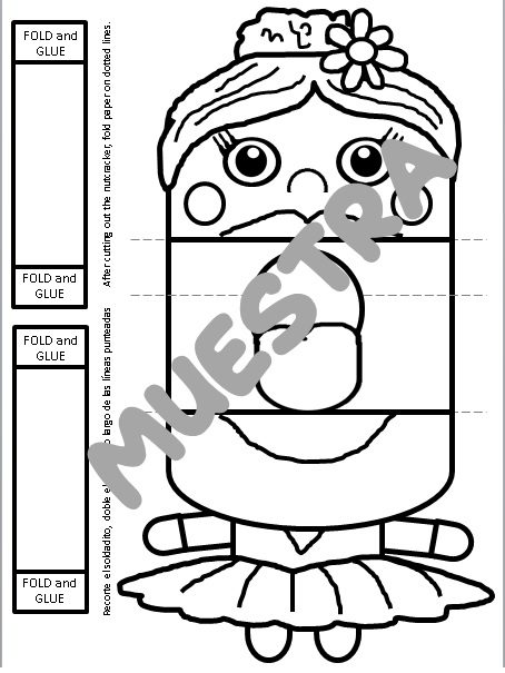 - Un PDF con cuatro marionetas de aproximadamente 15 X 25 cm (Cascanueces, Bailarina, Rey Ratón, Clara)