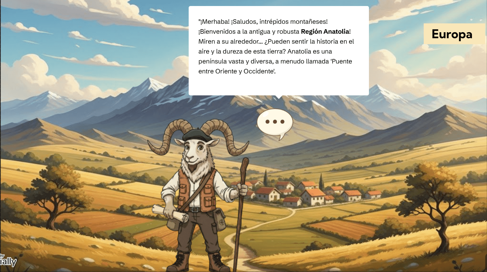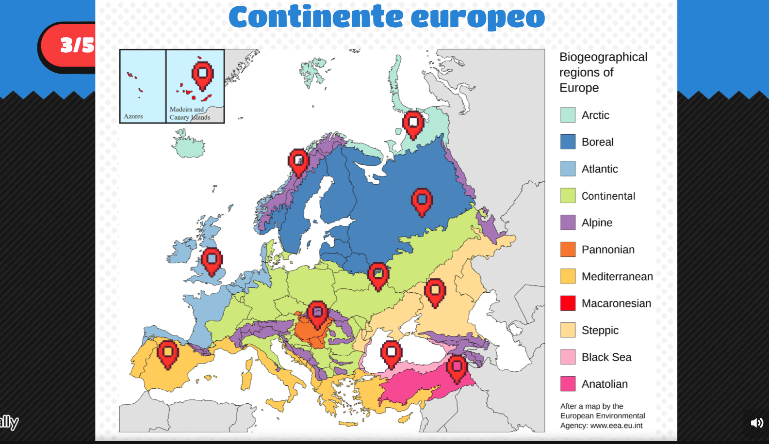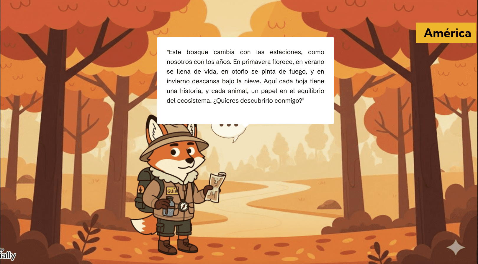 Banner colorido que dice "Biomas del mundo". Incluye un cactus, un tigre, un globo terráqueo y un botón rojo que dice "Empezar". También pregunta si conoces y quieres aprender sobre los biomas del mundo.