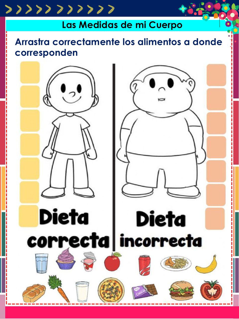 Mediciones de cintura y estatura , sumas y restas aplicadas en menús saludables