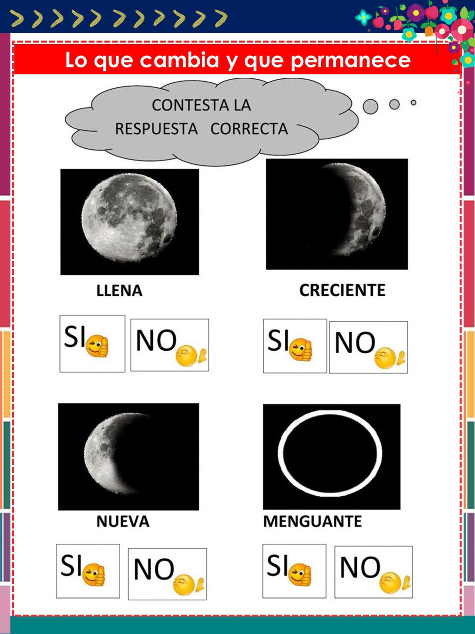 Observamos transformaciones en nuestro entorno, días, meses, años y ciclo de la Luna y sus cambios.