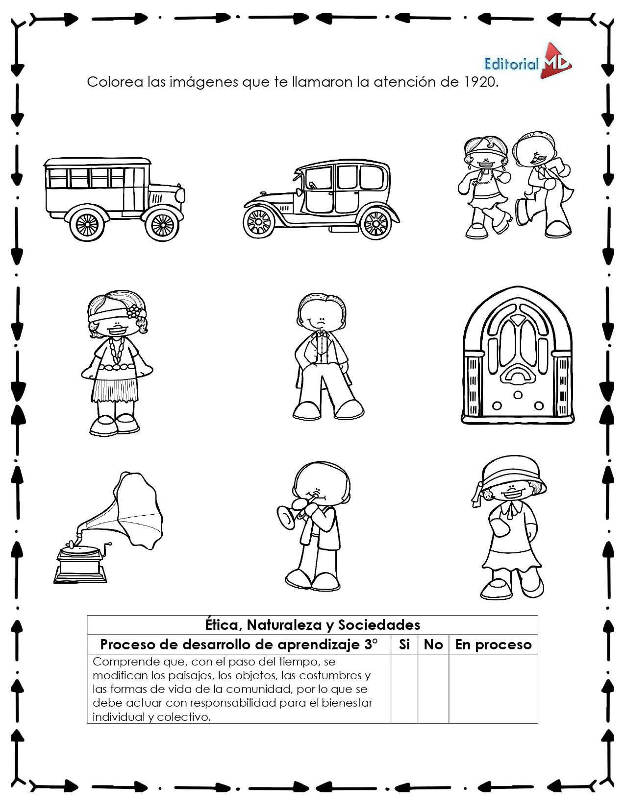 A lo largo de 14 páginas listas para imprimir, los alumnos observan, comparan, colorean y dibujan distintos elementos de diferentes épocas, fortaleciendo el pensamiento crítico inicial, la observación y la reflexión sobre el pasado y el presente, alineado con los Procesos de Desarrollo de Aprendizaje de los campos formativos Ética, Naturaleza y Sociedades, Saberes y Pensamiento Científico y De lo Humano y lo Comunitario.