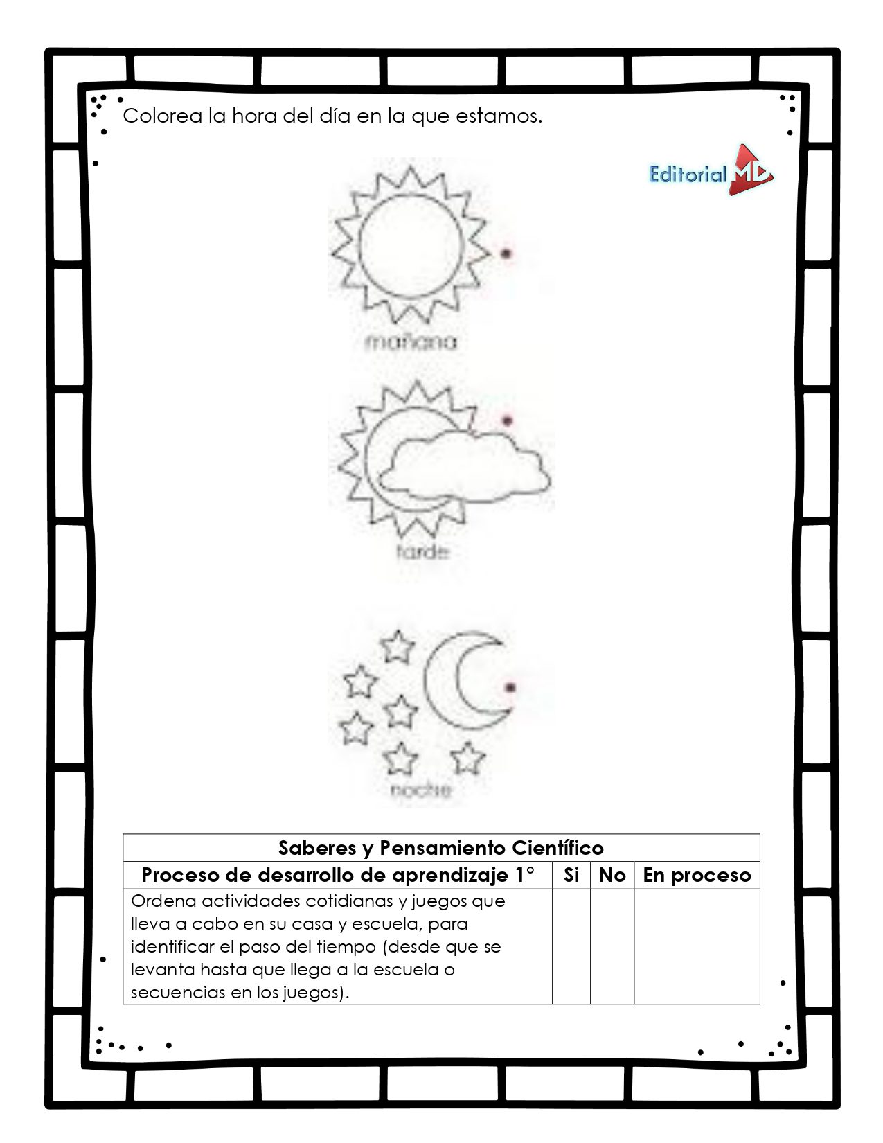 Colorear la hora del día en la que se encuentran (mañana, tarde o noche) (pág. 2).
