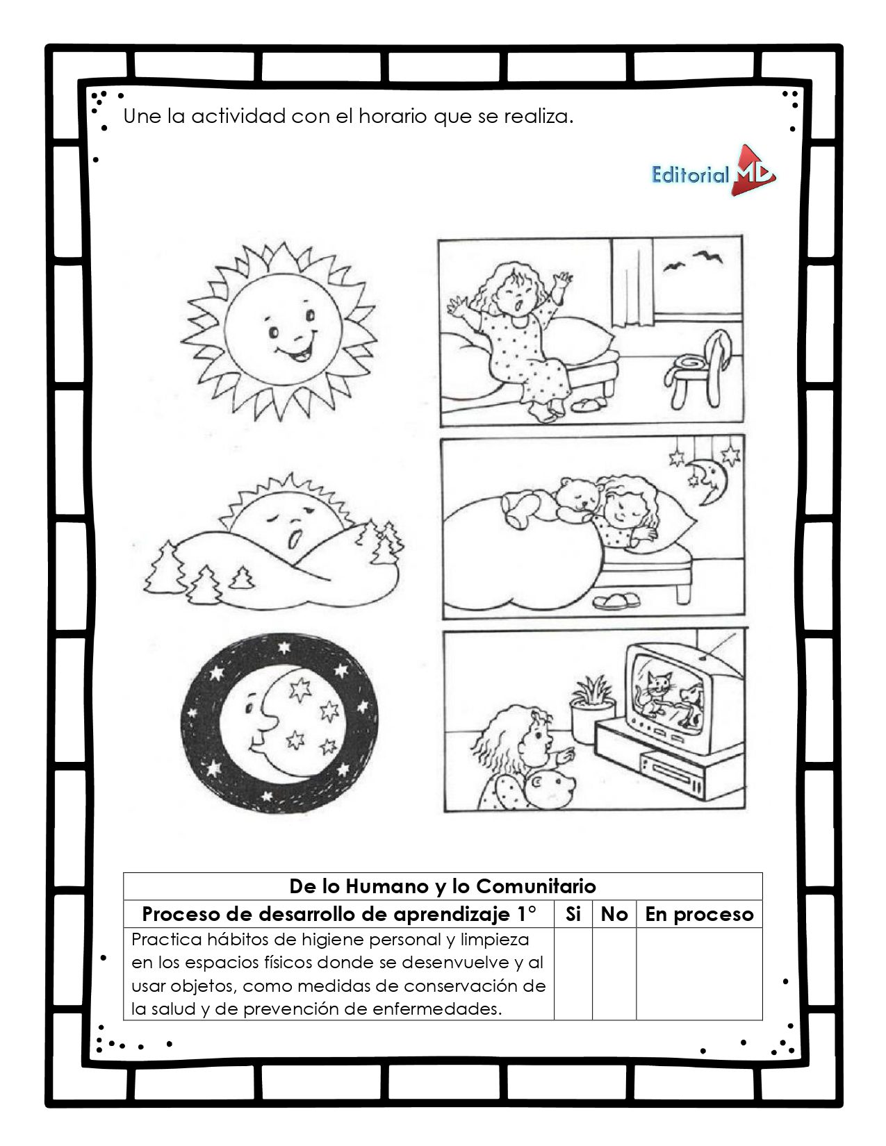Dibujar los hábitos de higiene que realizan en la mañana, tarde y noche (pág. 18).