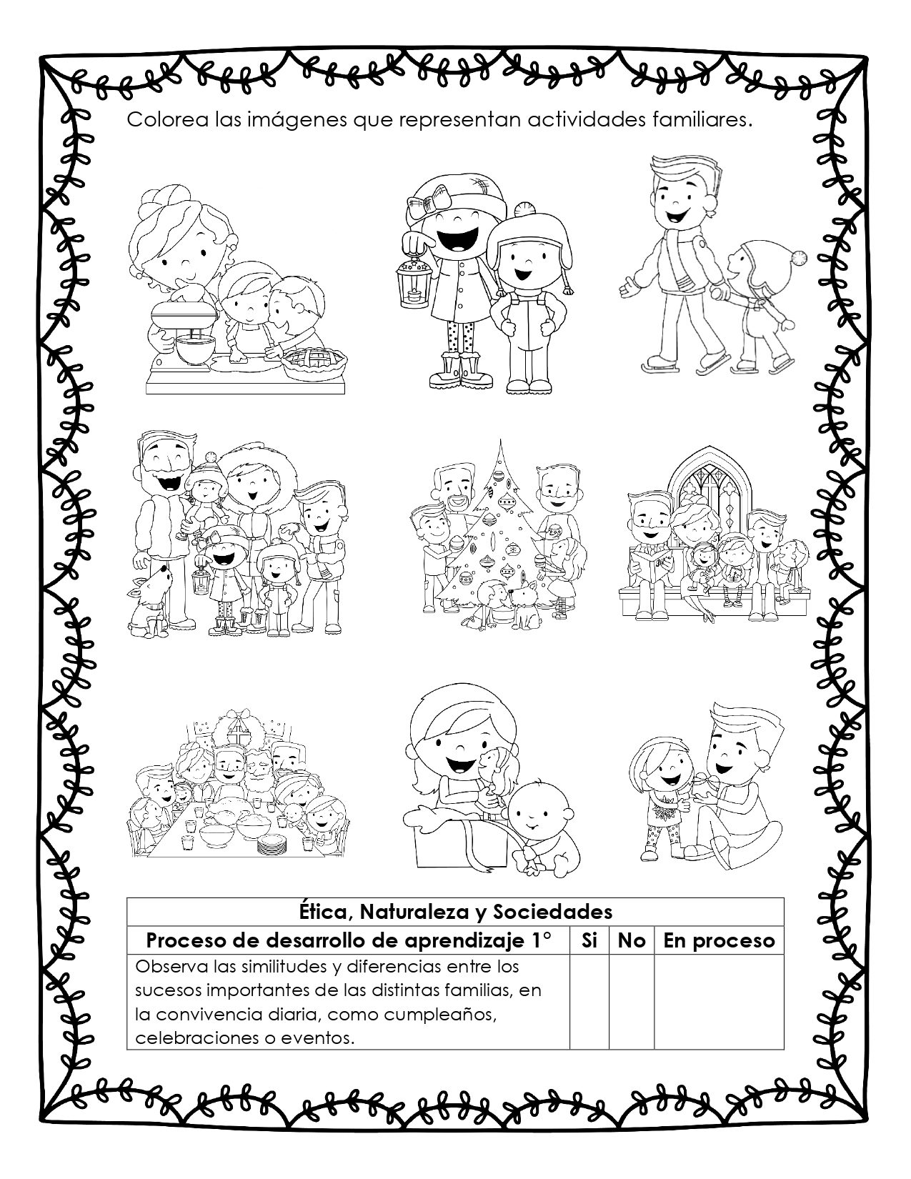 Dibujar a su familia y reconocer quiénes la conforman (pág. 2).