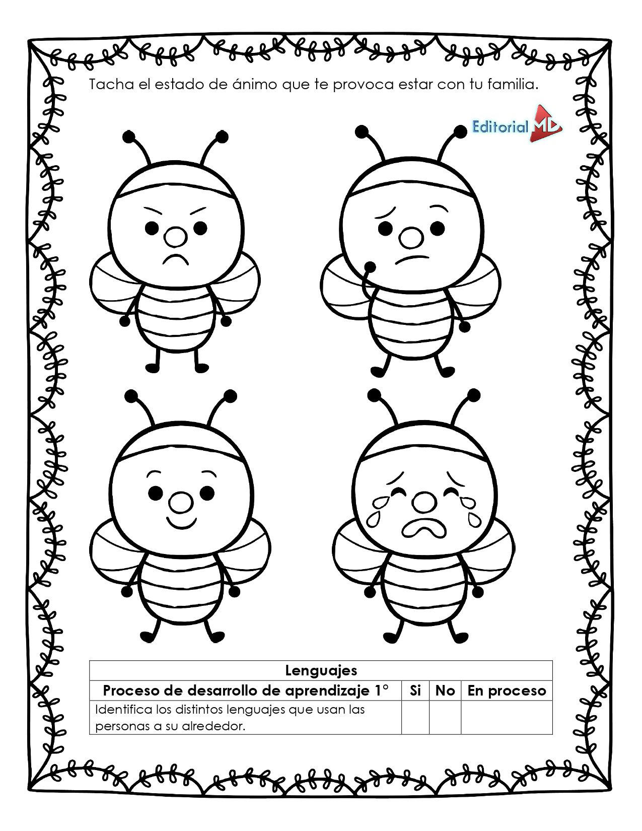 Identificar y tachar el estado de ánimo que les provoca estar con su familia (pág. 4).