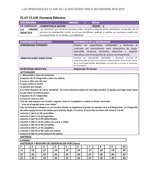 PLAN DE CLASE EDUCACIÓN FÍSICA TRES TRIMESTRES