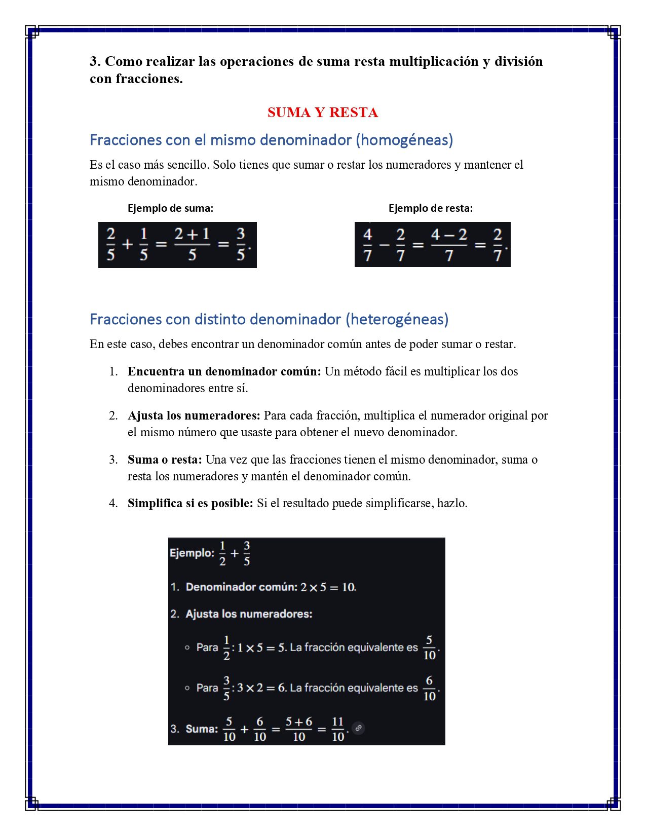 - Cómo resolver sumas, restas, multiplicaciones y divisiones de fracciones con ejemplos.