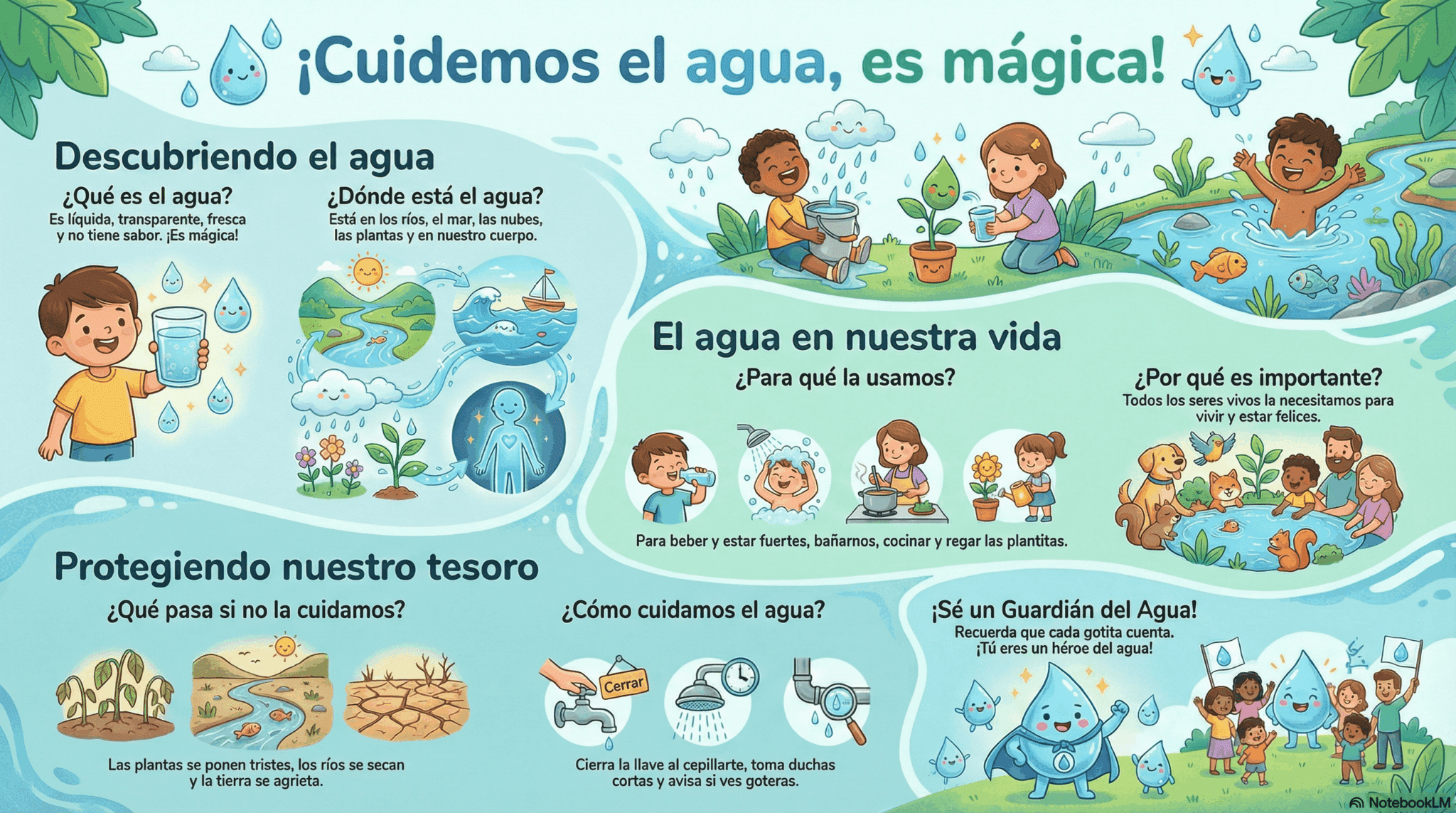 A través del juego, la exploración y la experiencia cotidiana, este proyecto permite que las niñas y los niños reconozcan la importancia del agua en su entorno, identifiquen sus usos en casa, la escuela y la comunidad, y desarrollen hábitos básicos de cuidado del agua desde edades tempranas.