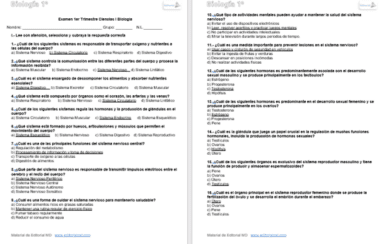 Exámenes Biología 1er trimestre NEM (Nueva Escuela Mexicana)