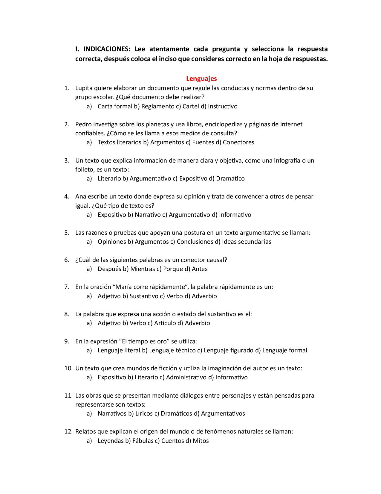 ✔️ 25 preguntas – Campo Formativo: Lenguajes