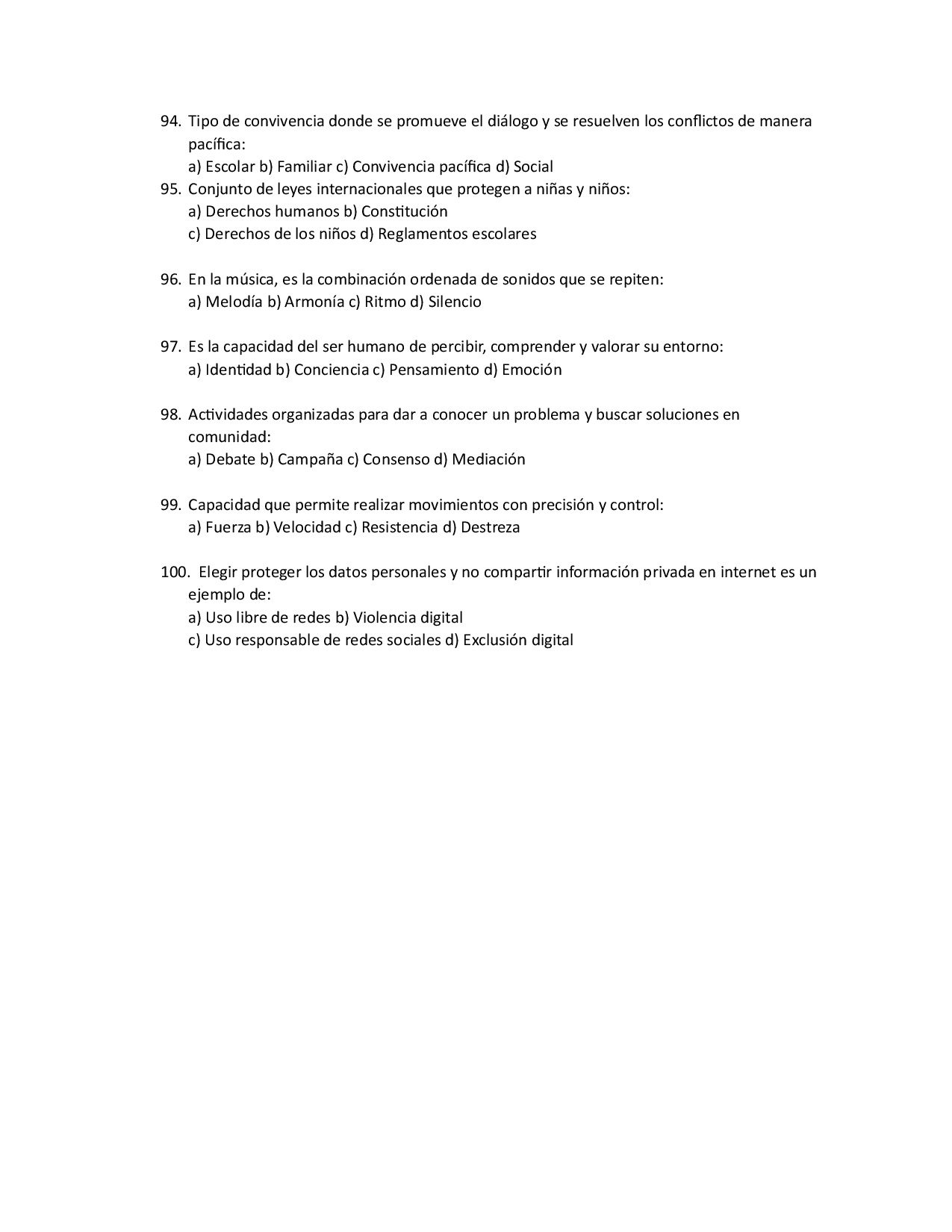 100 preguntas de opción múltiple | Ciclo escolar 2025–2026