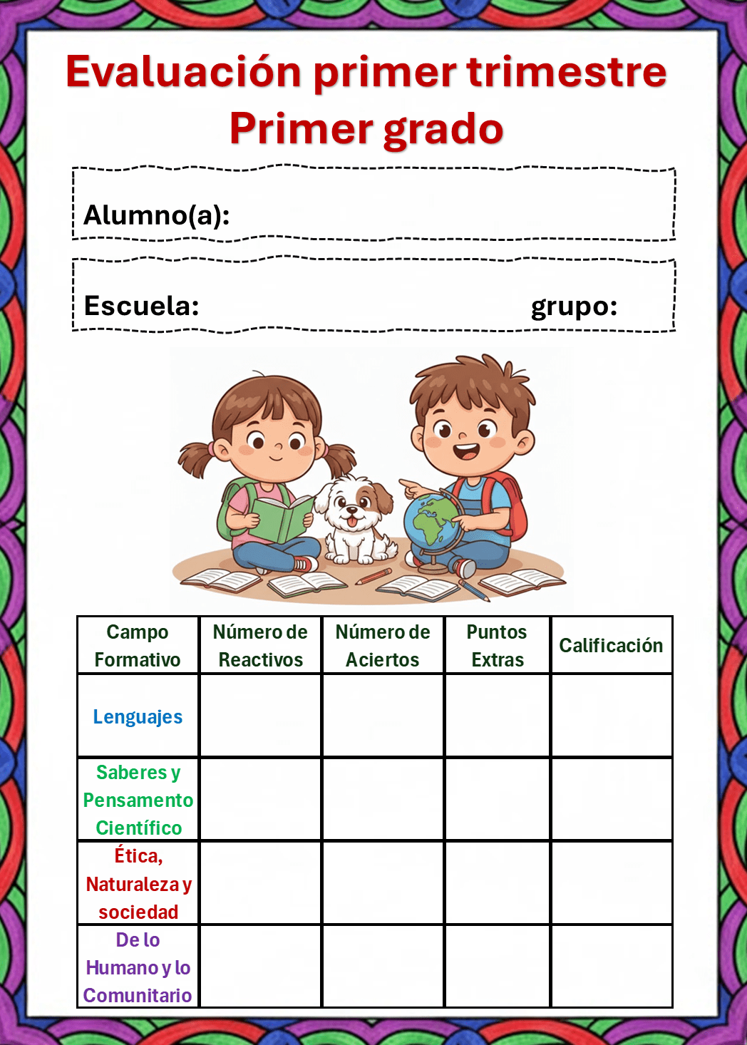 EXAMEN TRIM I PRIMER GRADO 2025-2026