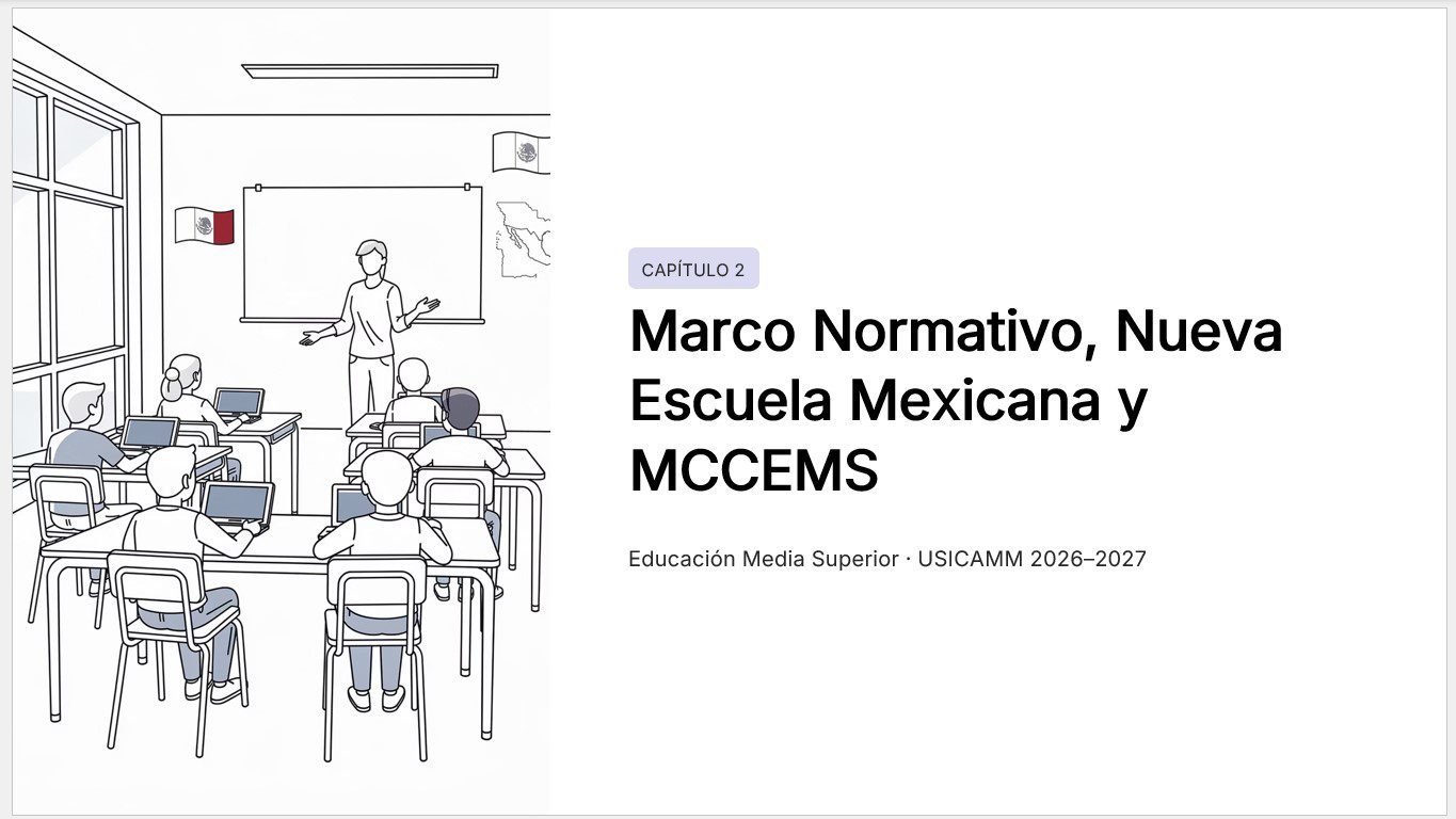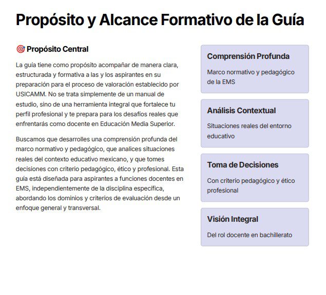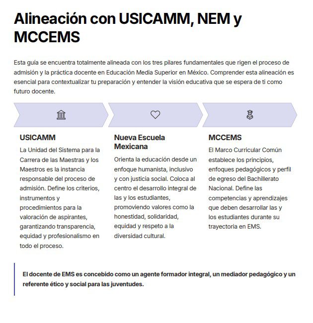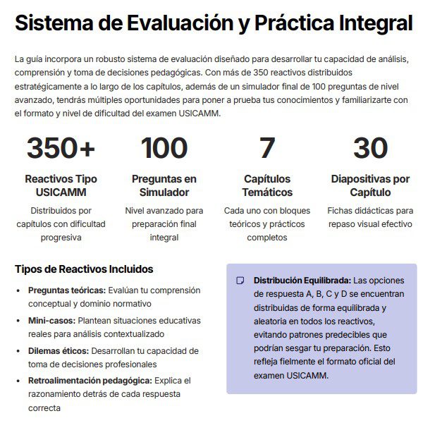 Prepárate de forma segura y estructurada para el Proceso de Admisión a Educación Media Superior USICAMM 2026–2027. Esta guía, desarrollada por Edunova, está organizada por capítulos alineados al Marco para la Excelencia, la Nueva Escuela Mexicana y el Marco Curricular Común de la EMS (MCCEMS). Cada capítulo incluye un PDF de estudio y una presentación en PowerPoint con fichas didácticas y preguntas tipo, facilitando un aprendizaje progresivo y efectivo. 👉 Incluye más de 350 reactivos tipo USICAMM, casos pedagógicos, dilemas éticos y un simulador final de examen.