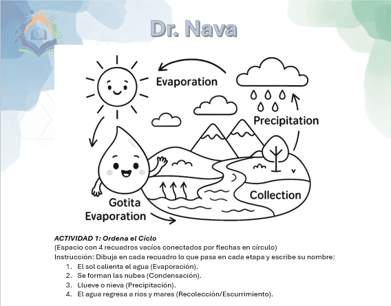 Recurso didáctico diseñado para 3º de Primaria (Fase 4) bajo el enfoque de la Nueva Escuela Mexicana. Integra saberes científicos y conciencia ambiental a través de tres momentos clave: una narrativa introductoria sobre las fases del agua, actividades de esquematización visual y un mini-experimento vivencial. Fomenta el Pensamiento Crítico y la Vida Saludable mediante la reflexión sobre el cuidado del agua en la comunidad.