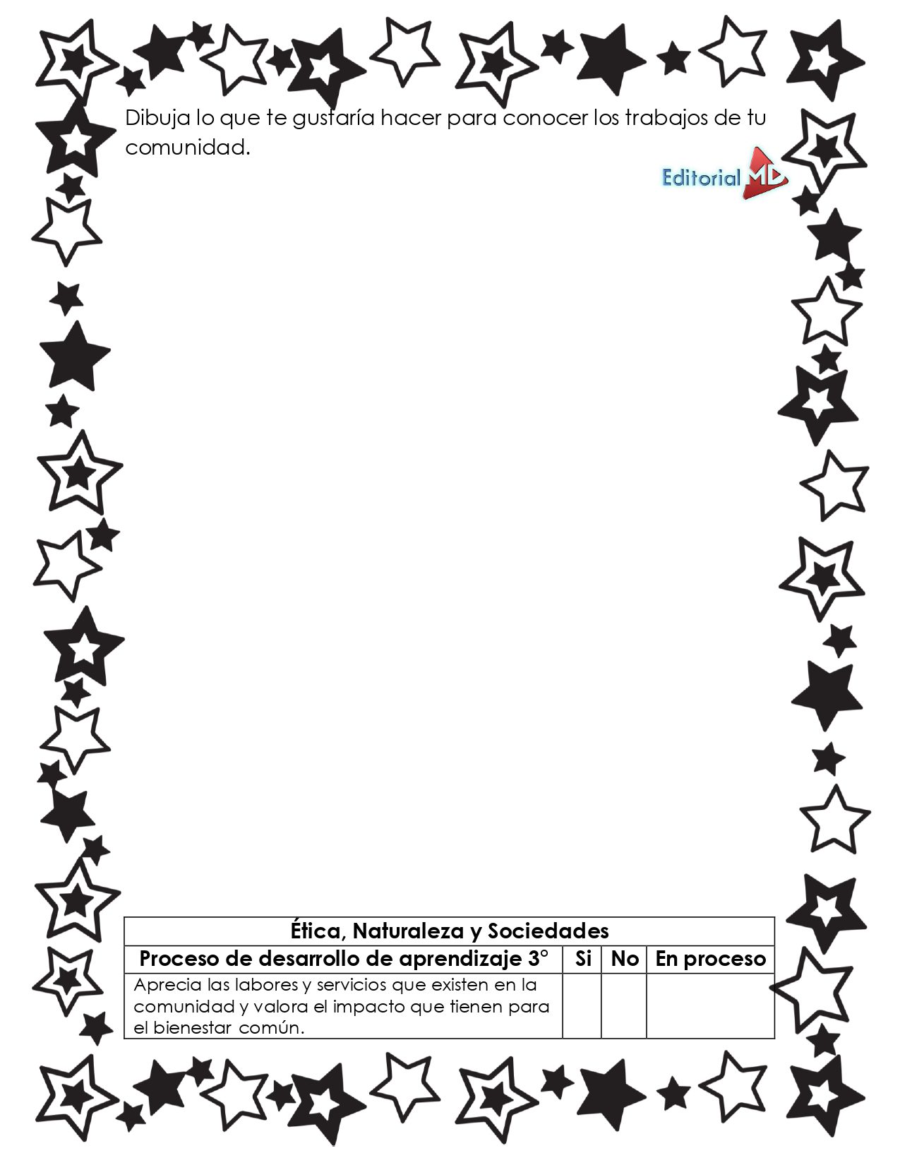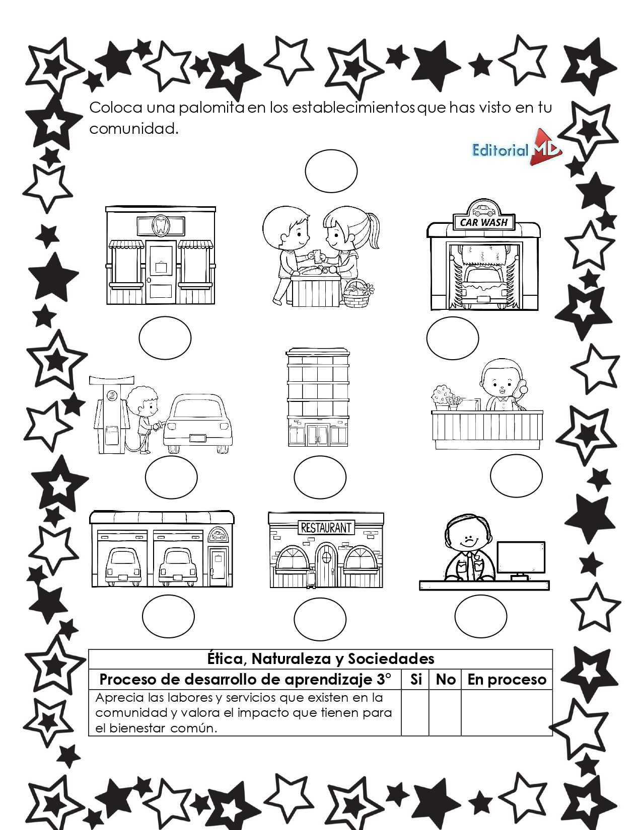 Dibujo de actividades para conocer los trabajos de la comunidad (pág. 6).