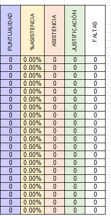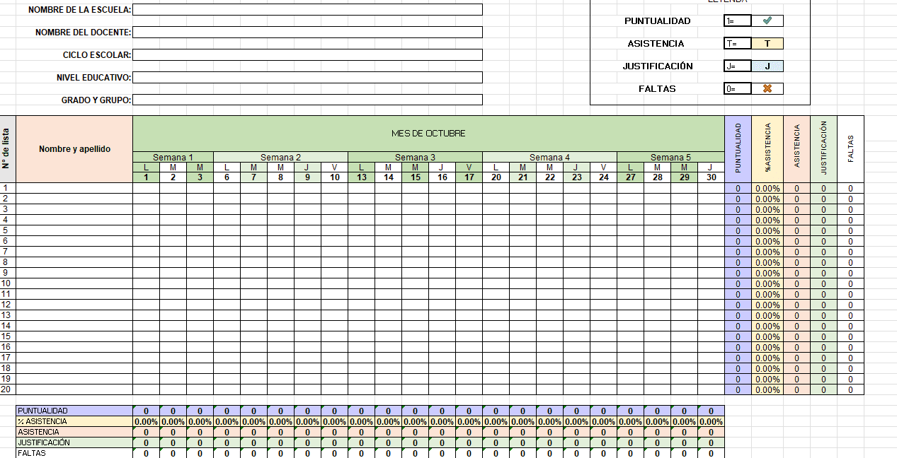 - Cuenta con una variedad de fórmulas que permiten clasificar los datos básicos en una lista de asistencia común, entre ellos Puntualidad, asistencia, justificantes y faltas.