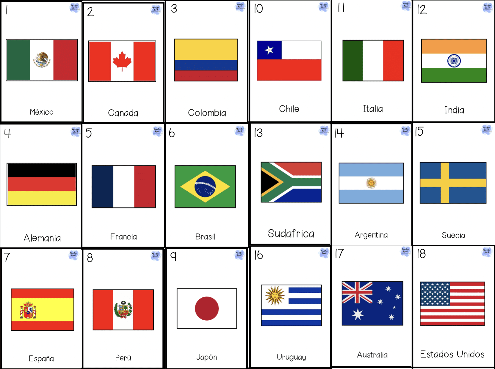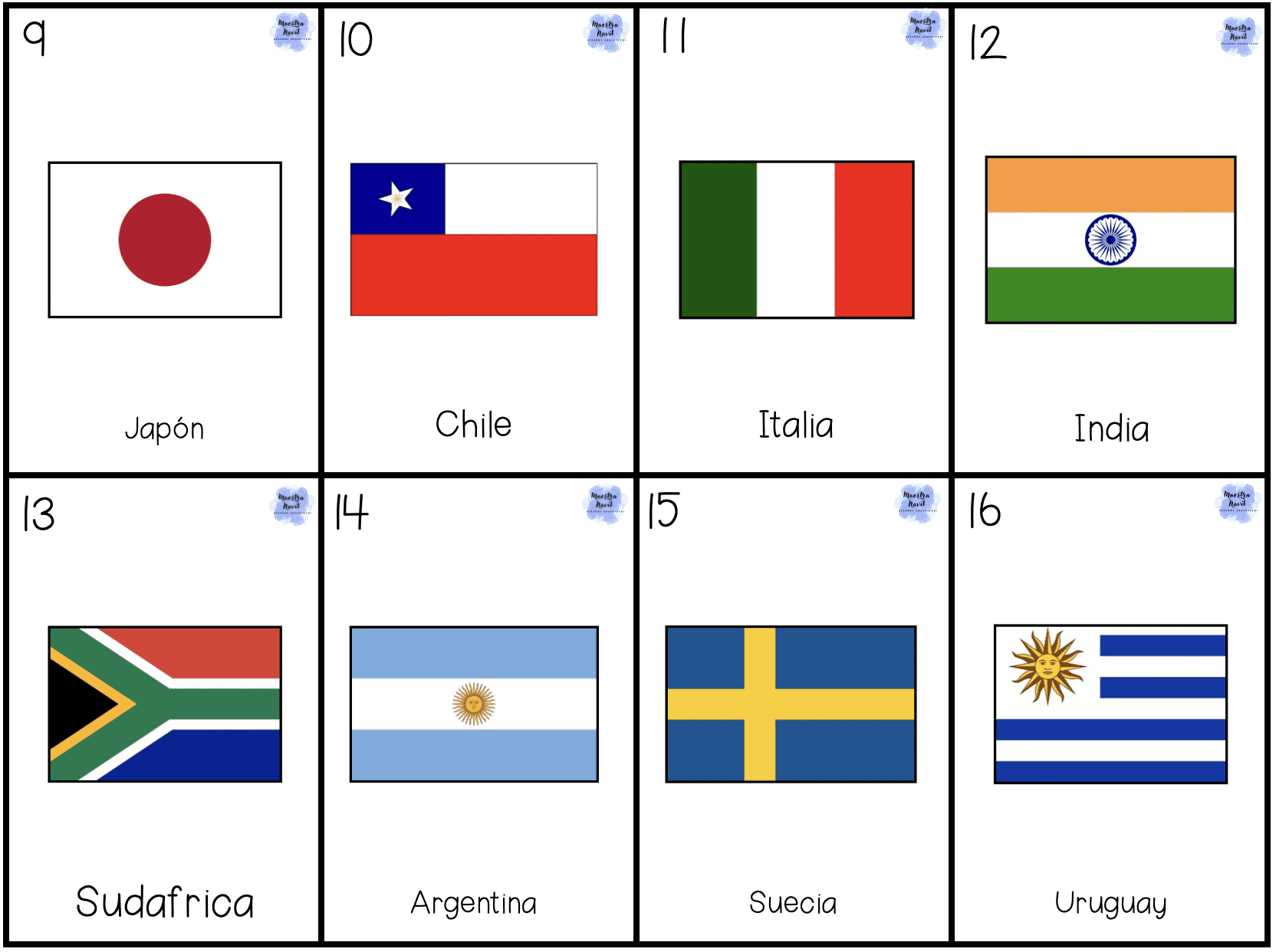 Loteria con las banderas de los paises que pertenecen a la organización de las Naciones Unidas