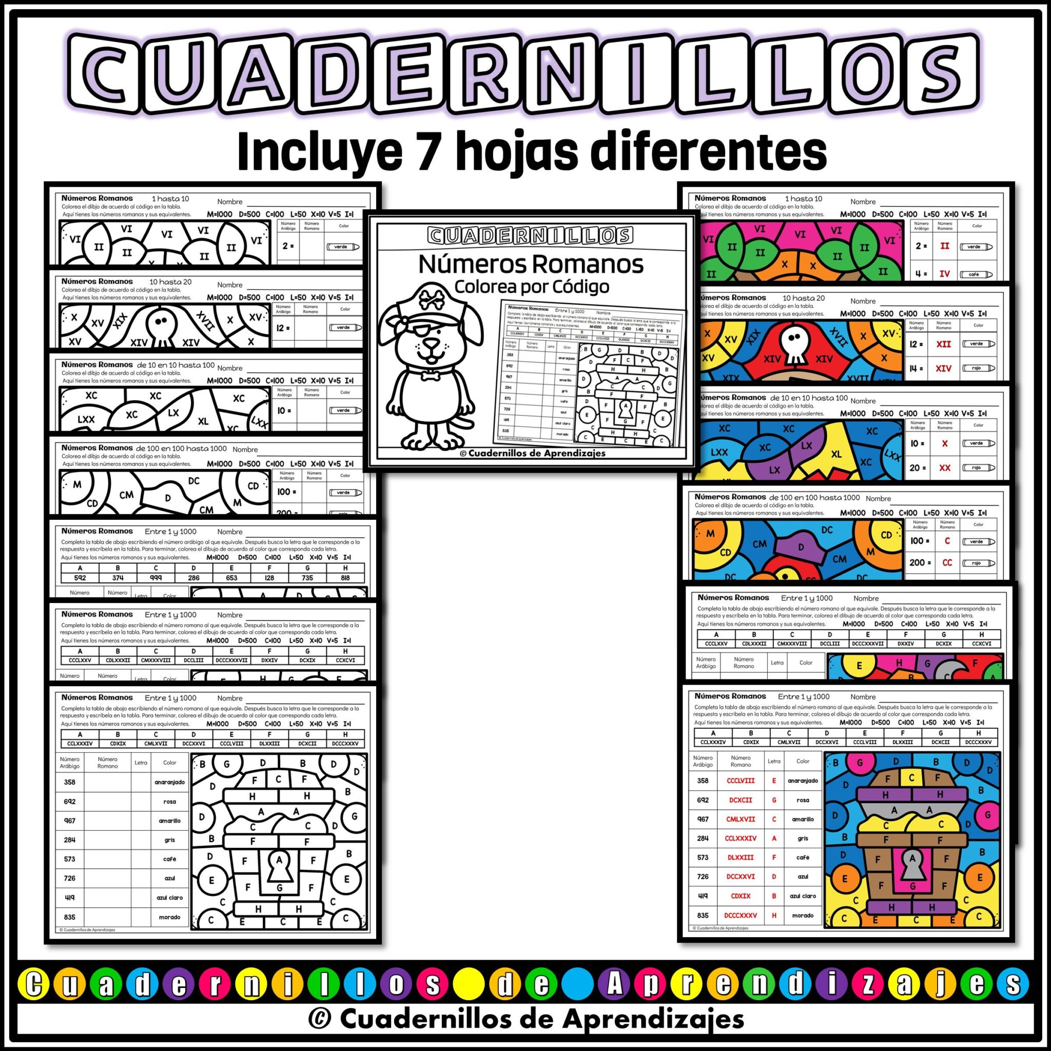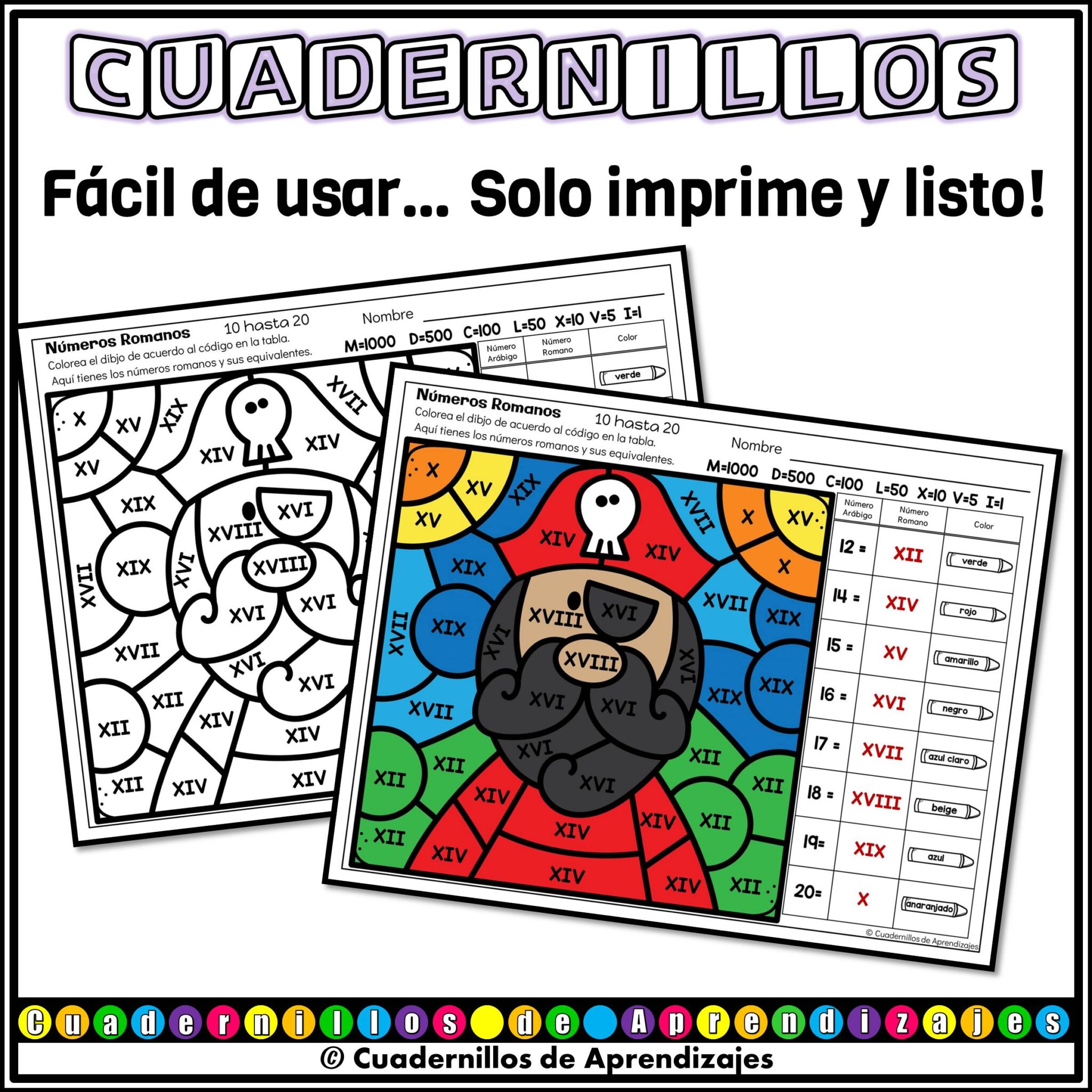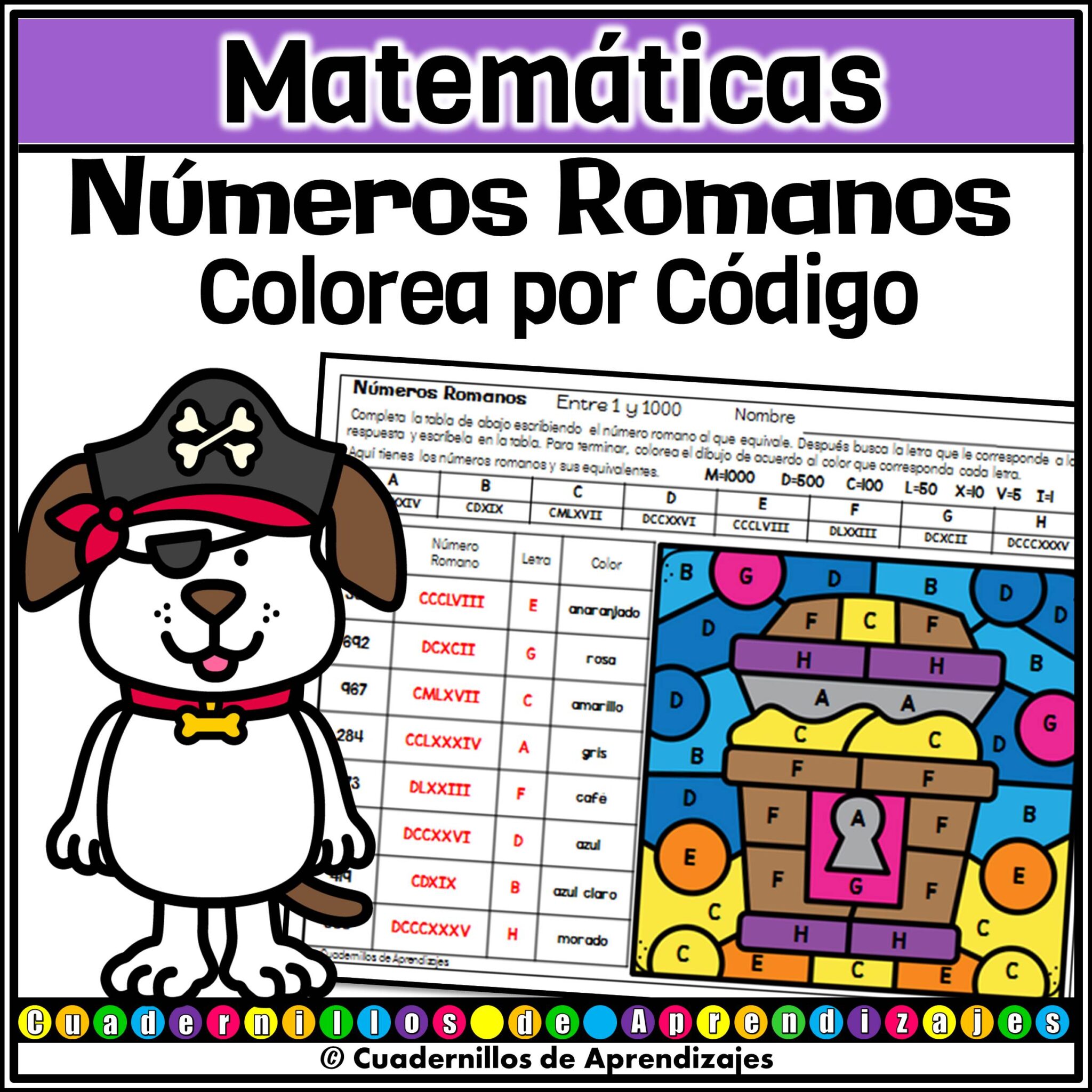 Números Romanos Colorea por Código es una divertida actividad de matemáticas para niños de primaia. Perfecta para repasar o practicar la escritura y lectura de números romanos.