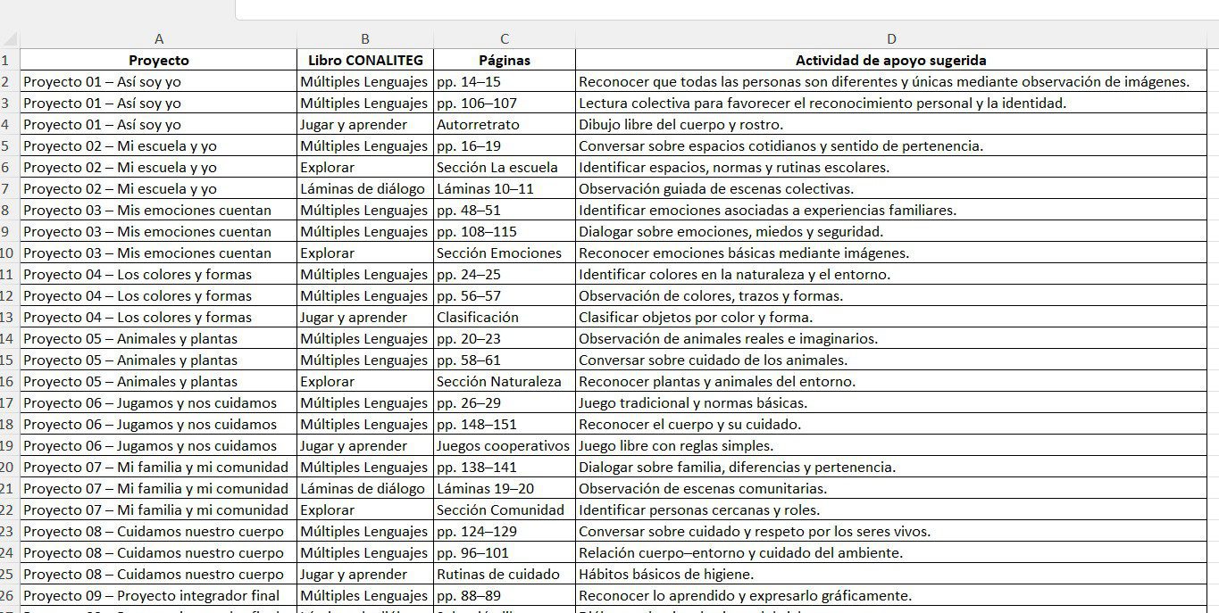 El contenido está organizado para cubrir las 36 semanas del ciclo escolar, a través de 9 proyectos didácticos integradores que articulan de manera natural los campos formativos y los procesos de desarrollo de aprendizaje establecidos en el Plan de Estudios 2022.