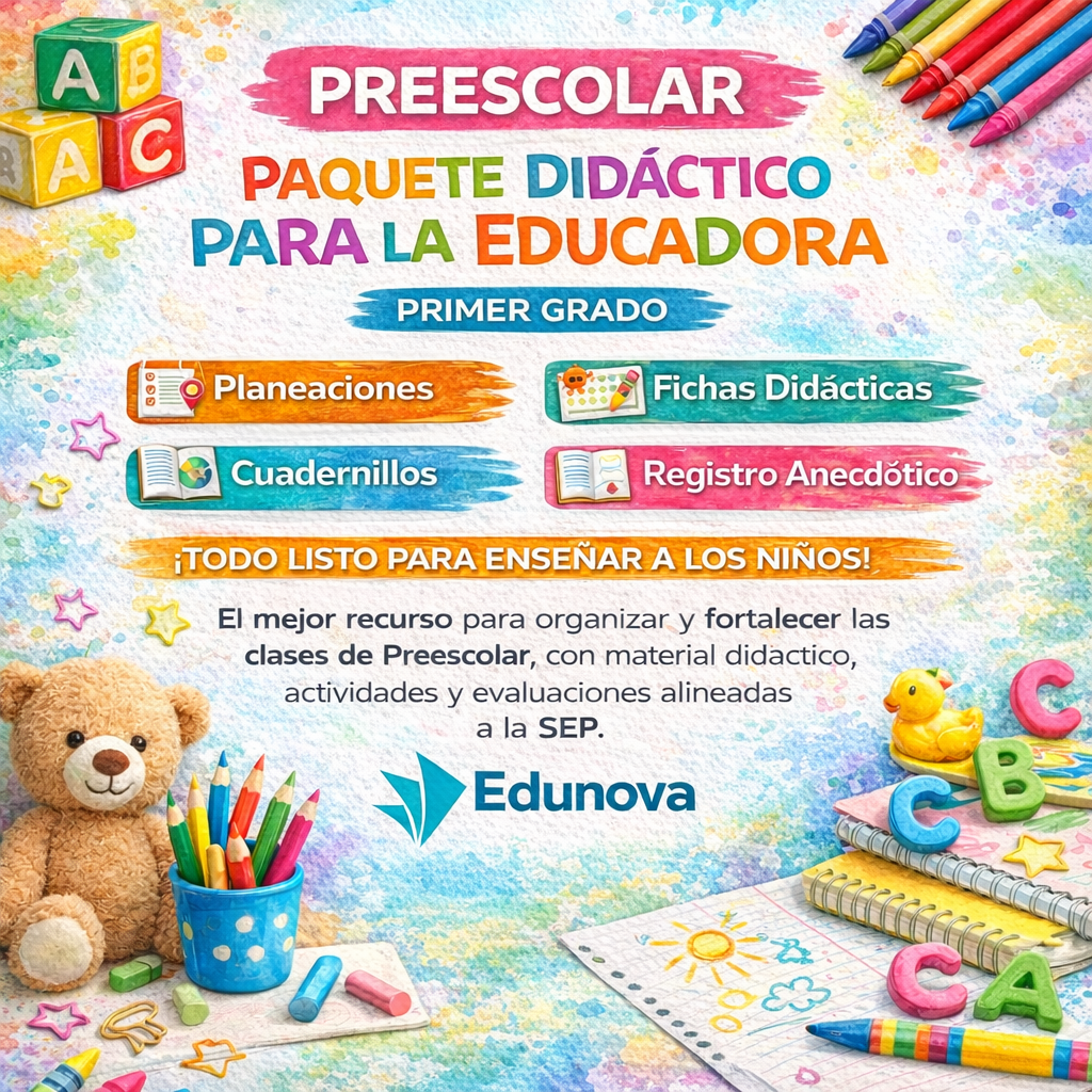 El Paquete Didáctico para la Educadora – Preescolar Primer Grado es una propuesta integral creada para acompañar, fortalecer y dar estructura a la práctica docente durante todo el ciclo escolar, reconociendo a la educadora como la figura central del proceso de aprendizaje.