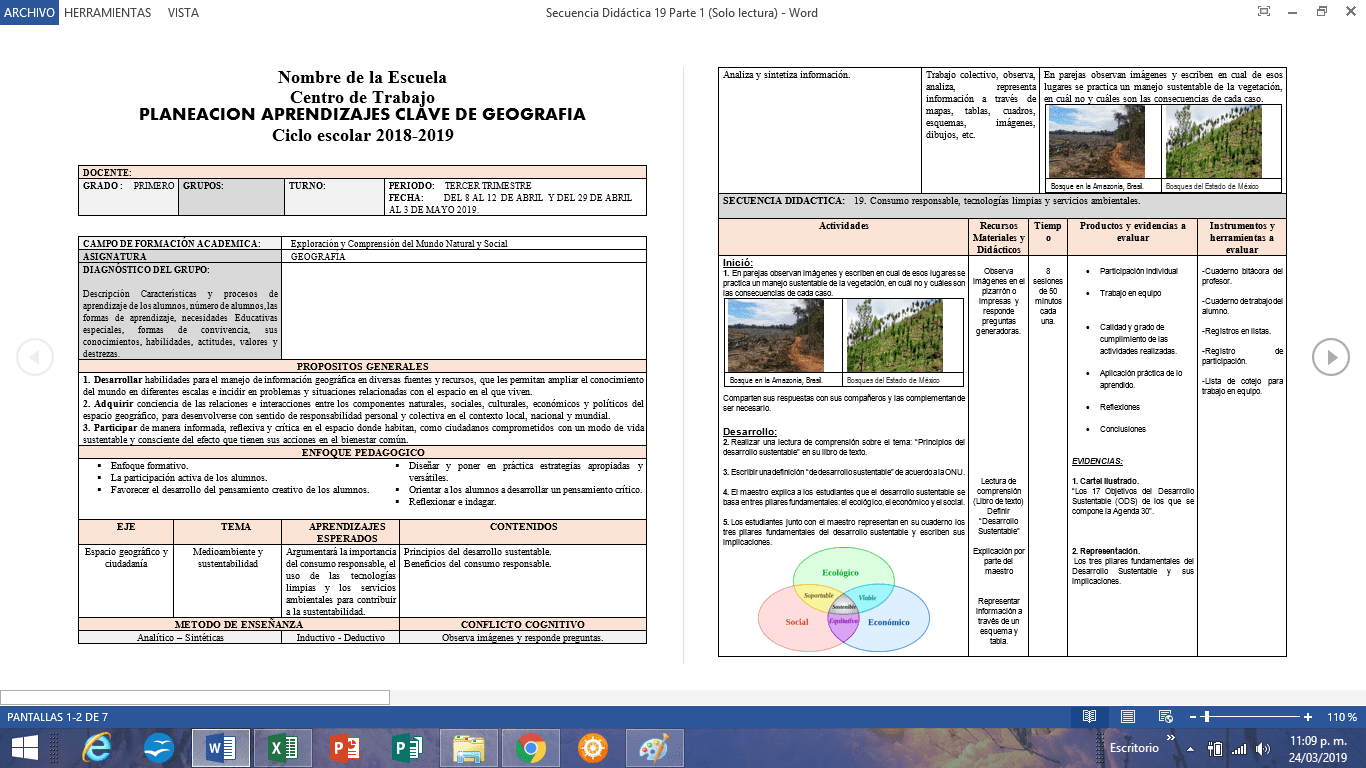 Planeación argumentada de los aprendizajes clave de Geografía de los TRES TRIMESTRES de primero de secundaria.