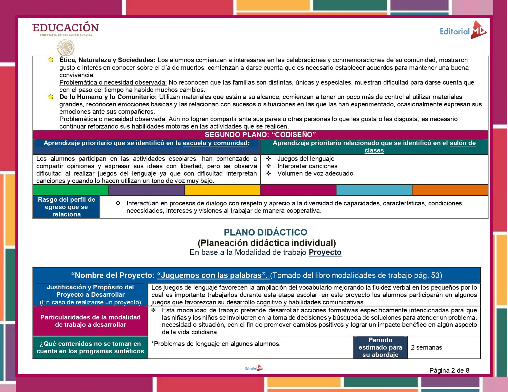 El Plano Didáctico “Juguemos con las palabras” es una planeación educativa completa diseñada para Preescolar, bajo la modalidad de trabajo por proyecto, con una duración de dos semanas, alineada al Plan de Estudios vigente de la Nueva Escuela Mexicana.