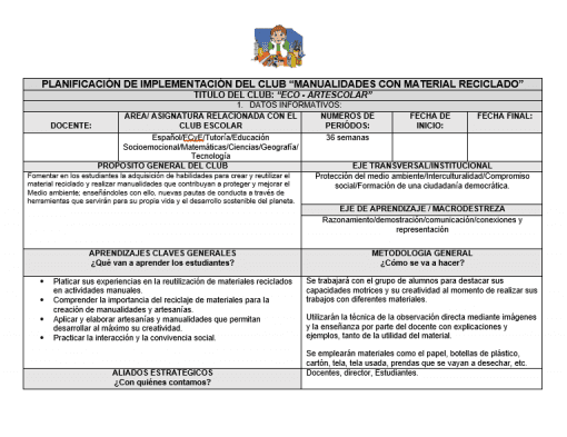 EJEMPLO DE CLUB MANUALIDADES