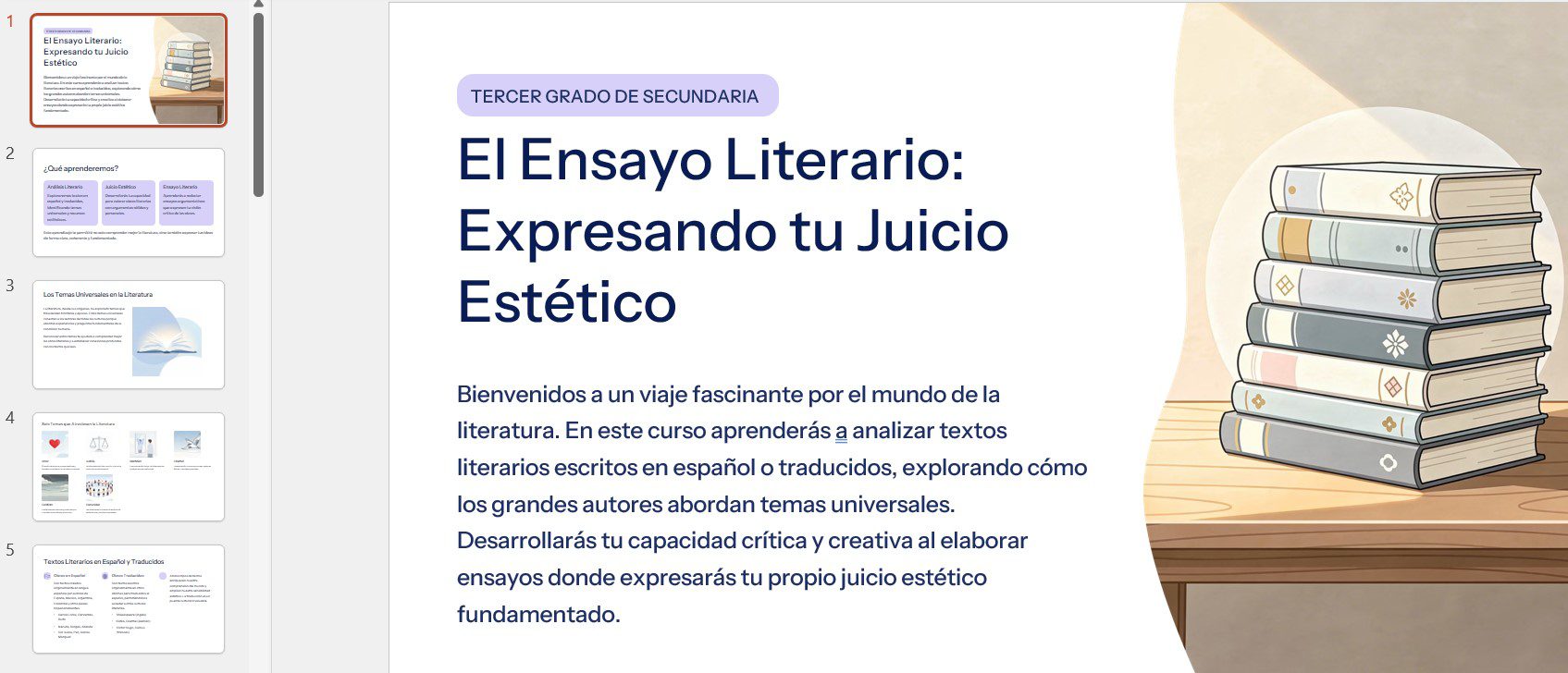 PowerPoints para Español – Tercer Grado de Secundaria es un recurso didáctico integral, diseñado para apoyar a las y los docentes en la implementación del Programa Sintético 2022 del campo formativo Lenguajes, conforme al enfoque de la Nueva Escuela Mexicana.