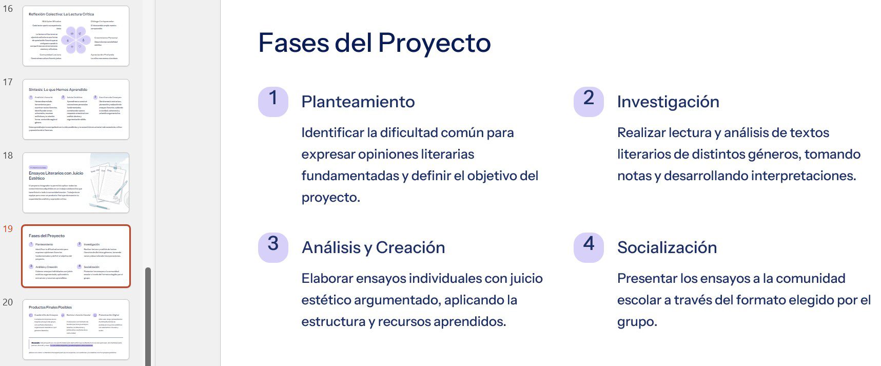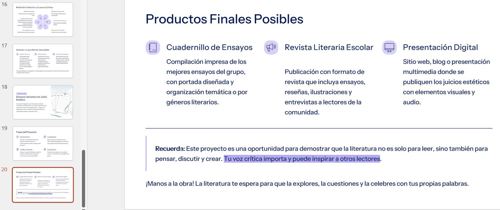 Este recurso permite al docente optimizar el tiempo de planeación, fortalecer la participación del alumnado y promover aprendizajes significativos a través del análisis, la reflexión y la producción oral y escrita.