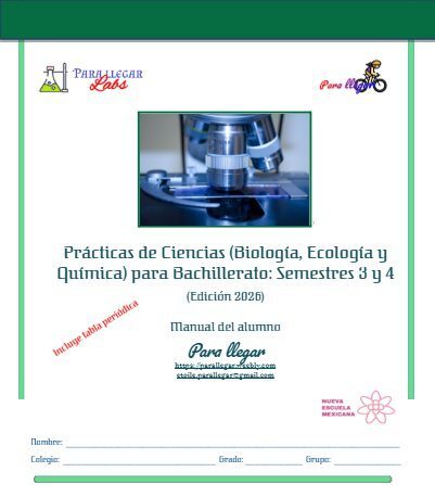 Prácticas de Ciencias (Biología, Ecología y Química) para Bachillerato: Semestres 3 y 4. (Edición 2026). Manual del alumno. Conforme al Programa de Estudios del Componente Básico del Marco Curricular Común de la Educación Media Superior. México. Incluye las prácticas: