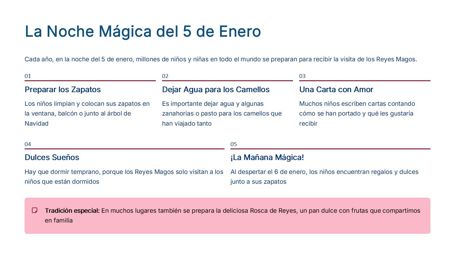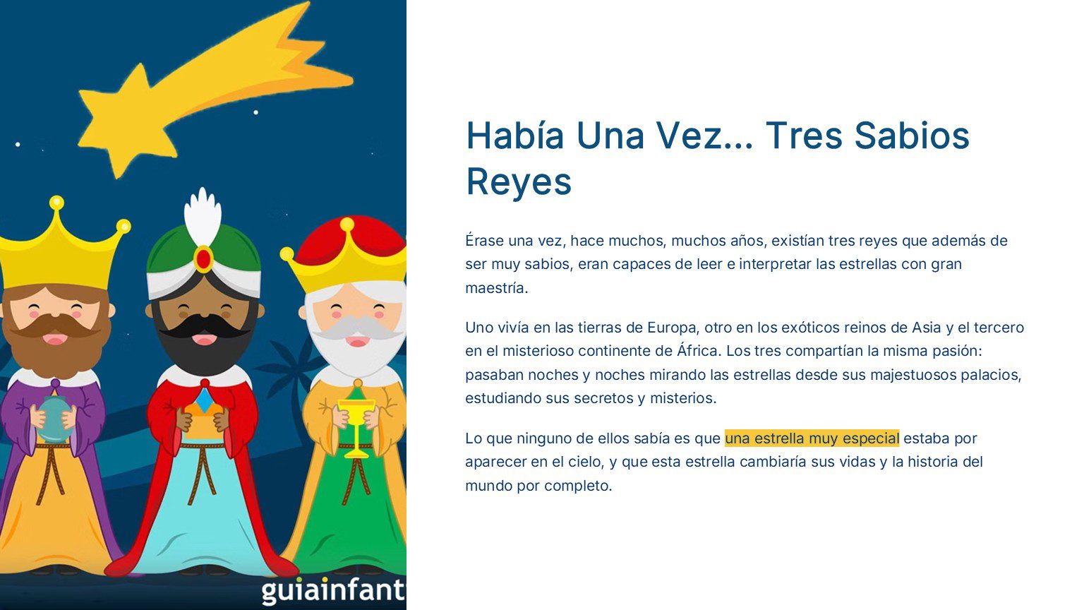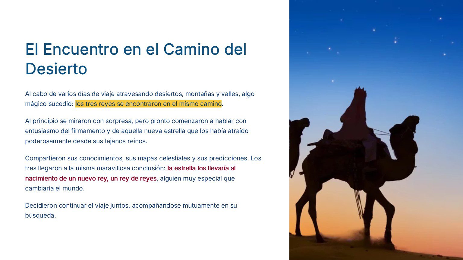 La presentación narra este momento con un toque de emoción y magia, perfecto para captar la atención de los más pequeños.