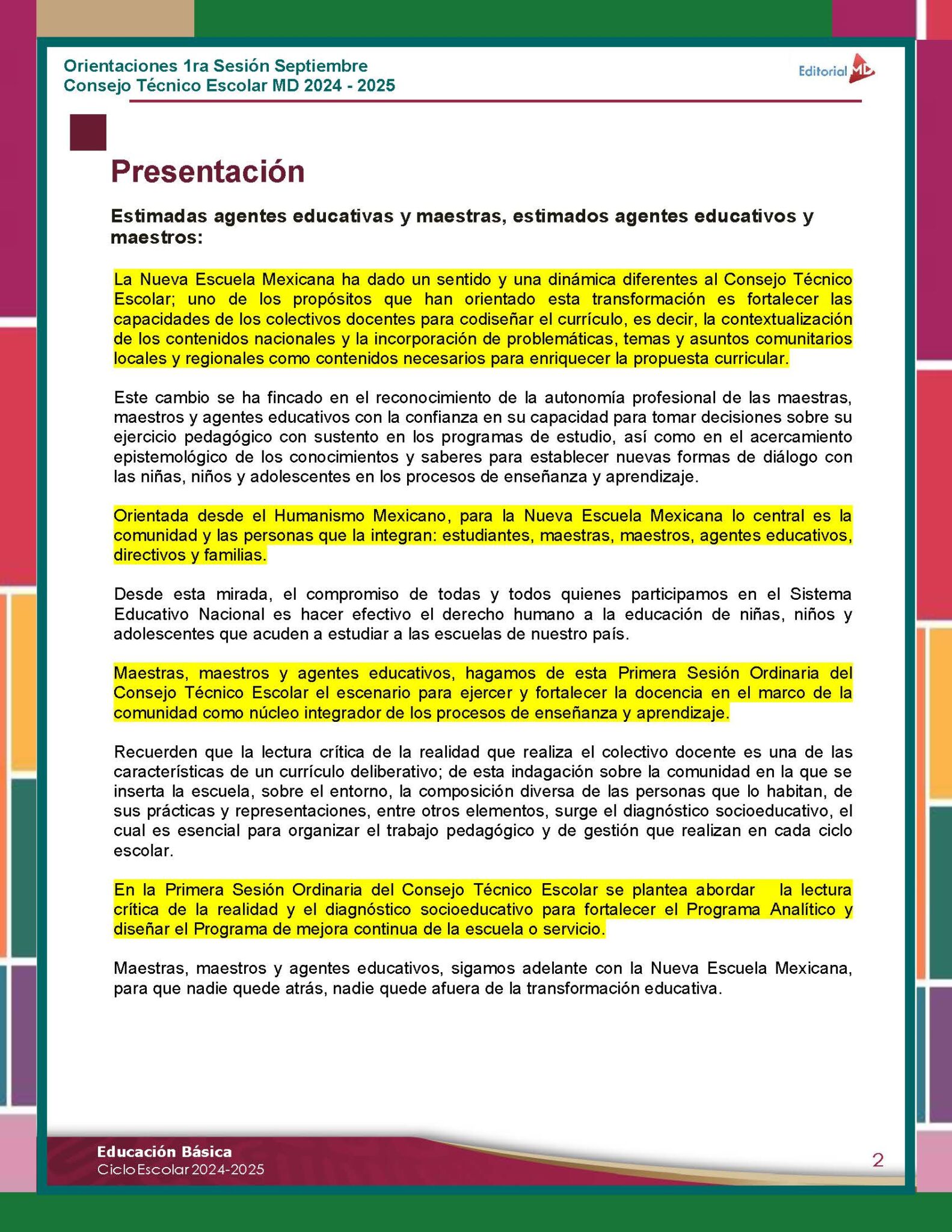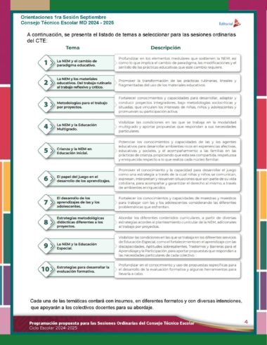 Orientaciones sobre cómo estructurar las próximas sesiones, abordando temas relevantes y estratégicos para el ciclo escolar 2024-2025.