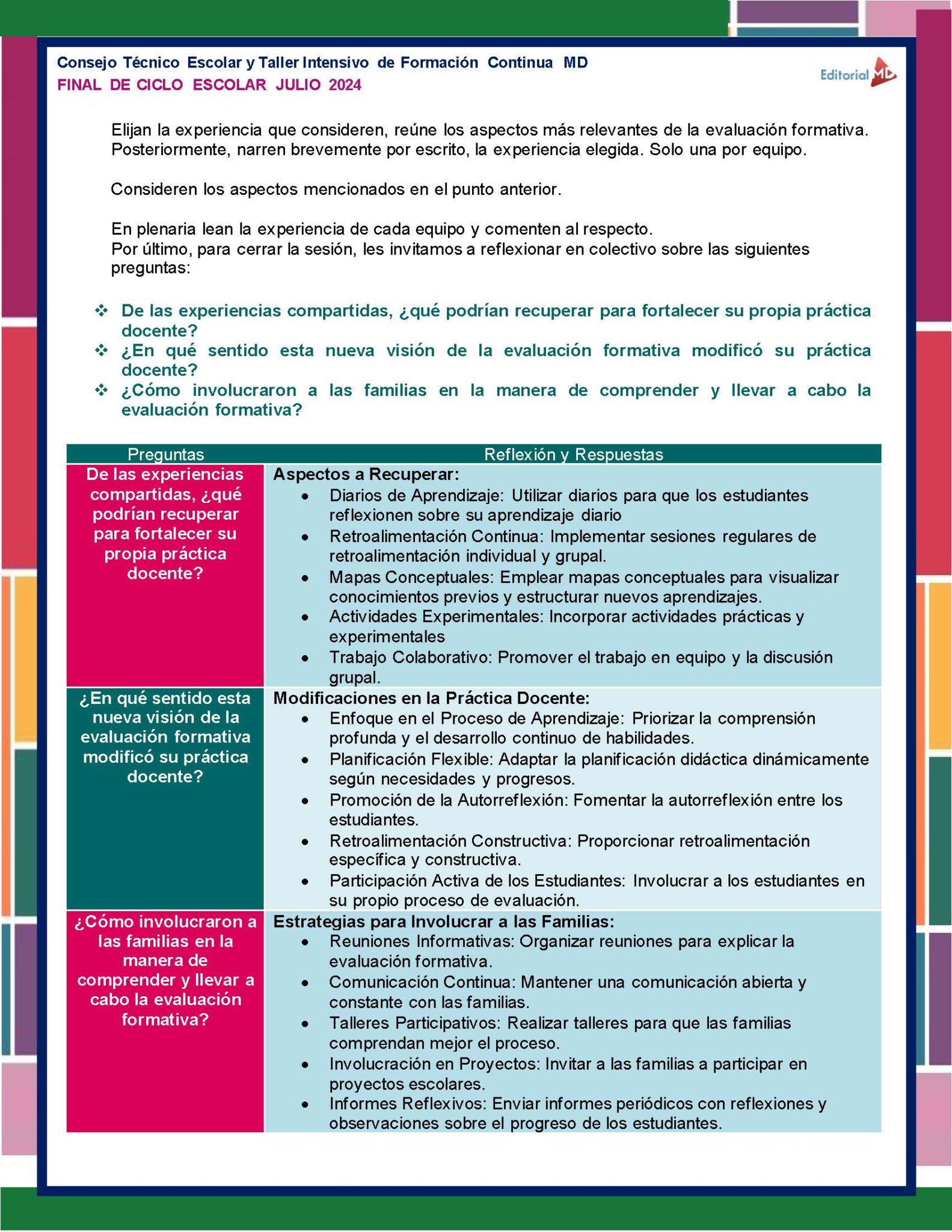 - Compartir información relevante sobre los procesos de aprendizaje de las y los estudiantes que sirva de base para las maestras o los maestros que trabajarán con ellas y ellos el siguiente ciclo escolar.
