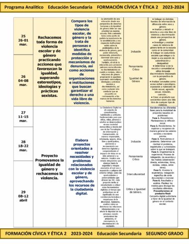 El Programa Analítico de FORMACIÓN CÍVICA Y ÉTICA 2, Secundaria 2º Contiene: