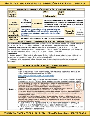 El Programa Analítico de FORMACIÓN CÍVICA Y ÉTICA 3, Secundaria 3º Contiene: