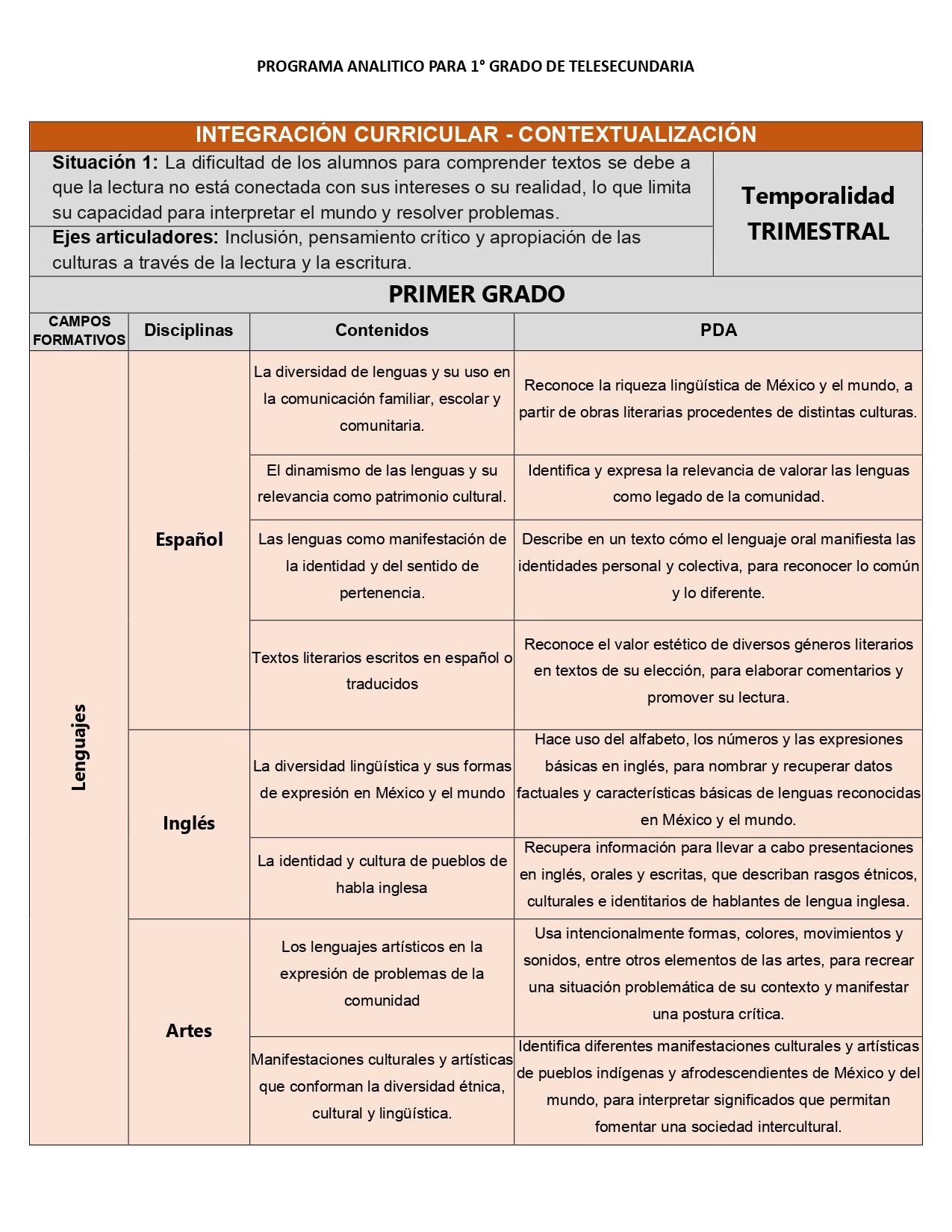 PROPUESTA DE PROGRAMA ANALITICO PARA 1° DE SECUNDARIA
