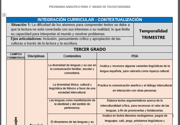 PROGRAMA ANALITICO PARA TERCERO DE TELESECUNDARIA