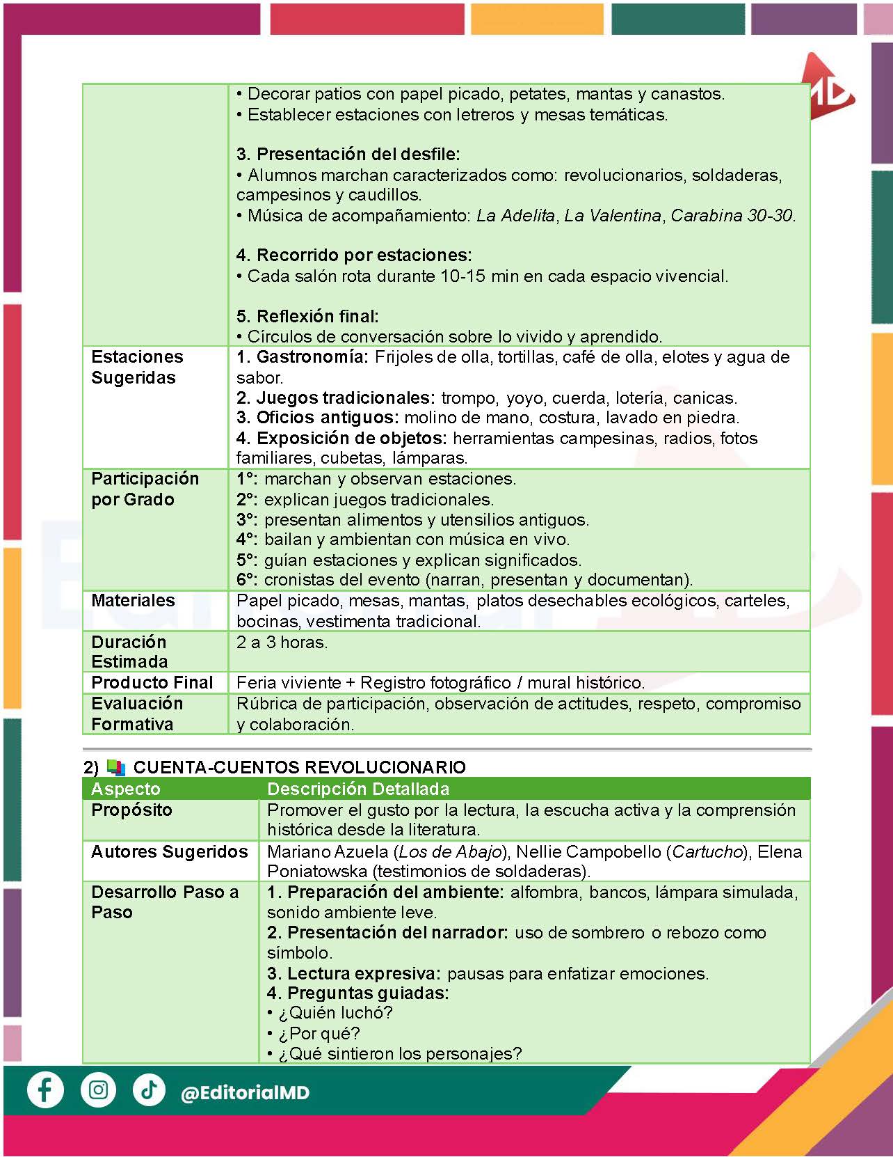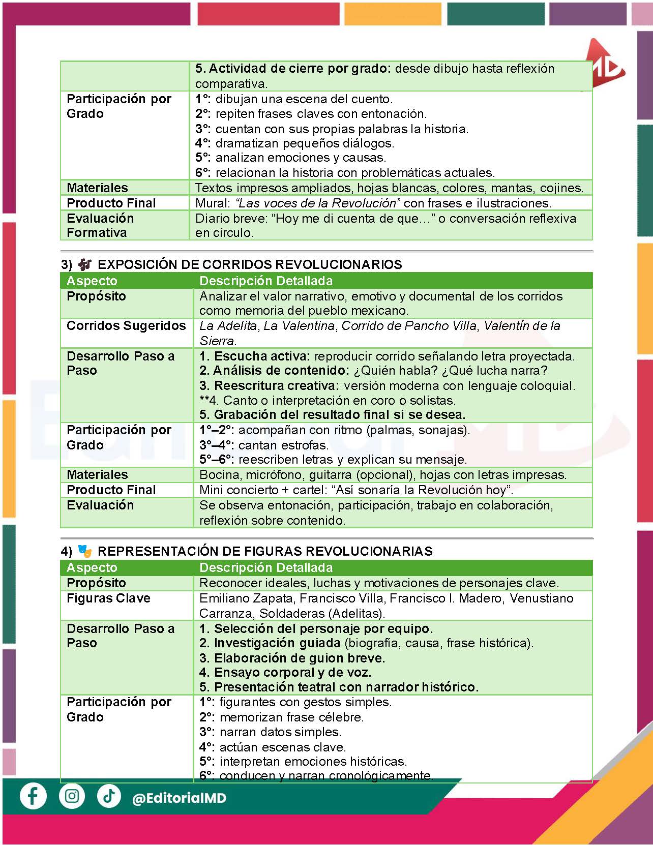 Con propósito, desarrollo paso a paso, roles y materiales. |