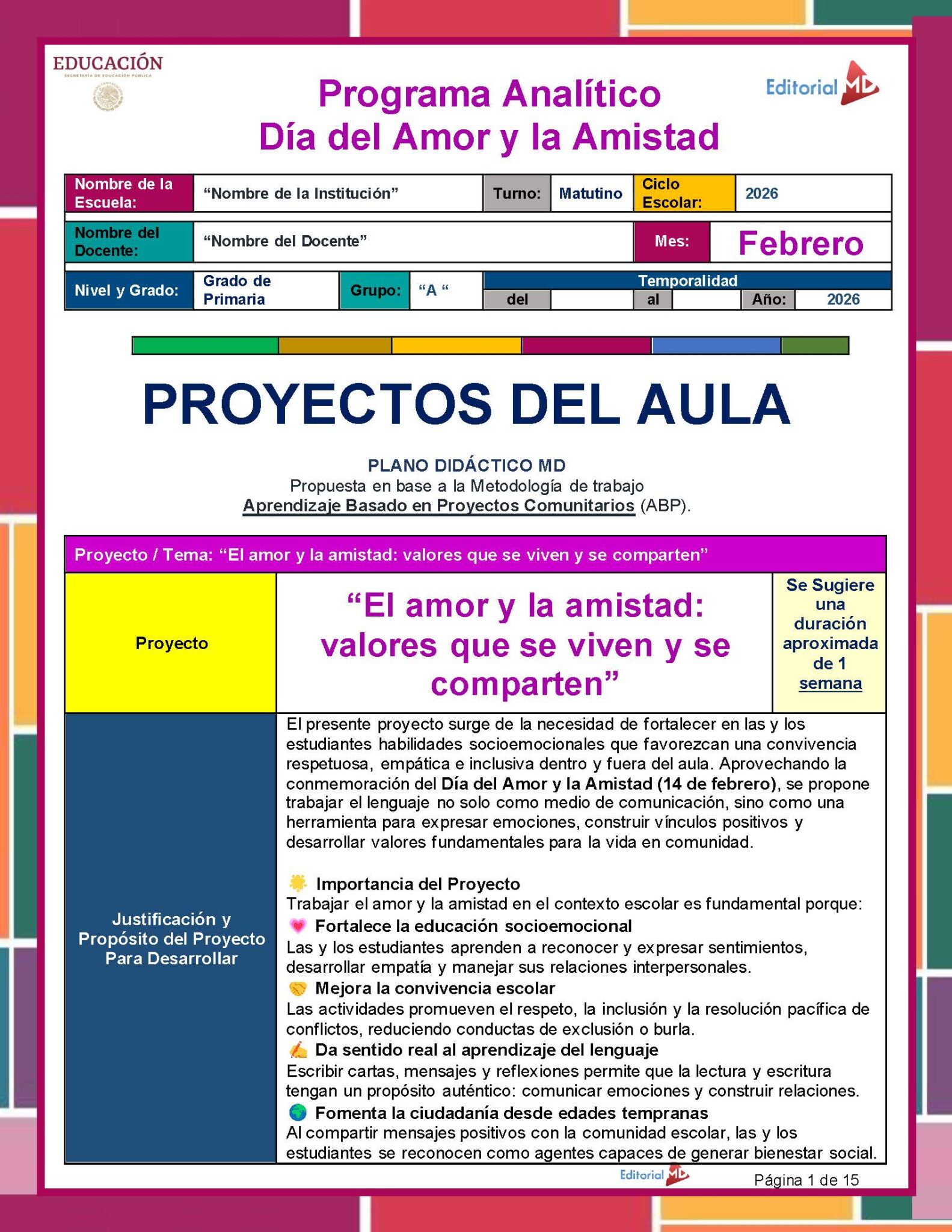 📅 Febrero (14 de febrero) | 🏫 Primaria: 1° a 6° | ✅ DESCARGA INMEDIATA | 📝 100% EDITABLE en Word | 🎞️ + Cuadernillo en PowerPoint