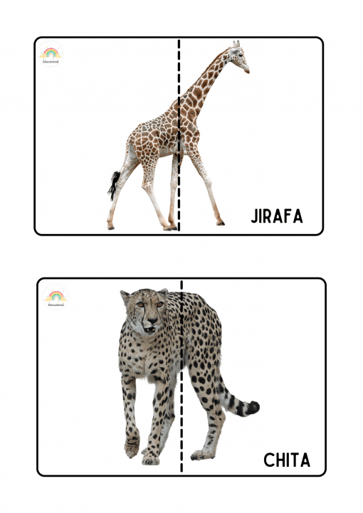 Juego de rompecabezas de dos piezas. Posee imágenes reales de animales salvajes.