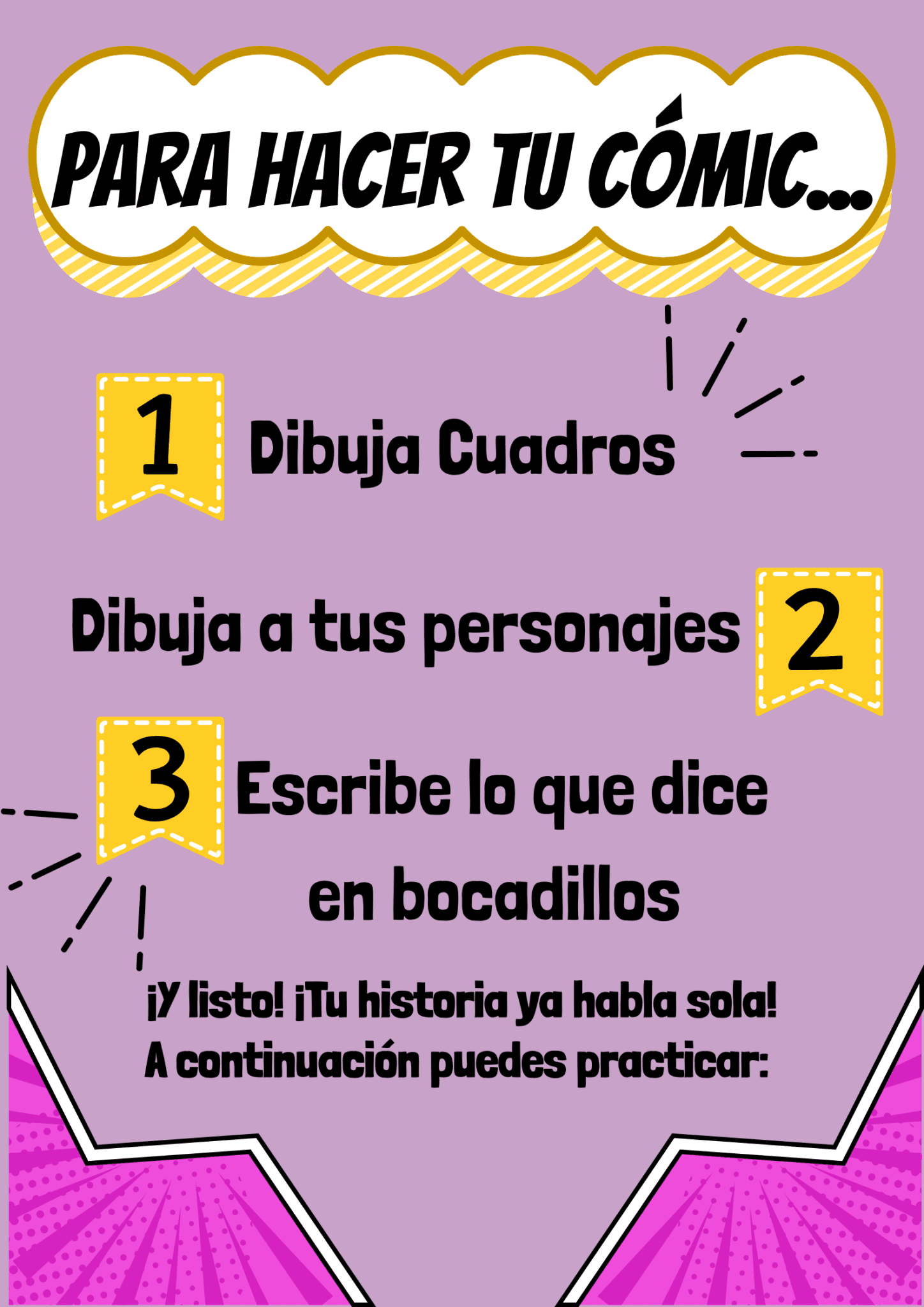 1. Todo sobre los cómics. Explicación detallada para que cualquier niño/a pueda escribir su propio cómic.