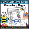 Hojas de trabajo para recortar y pegar que promueven la práctica del reconocimiento de sonidos iniciales.