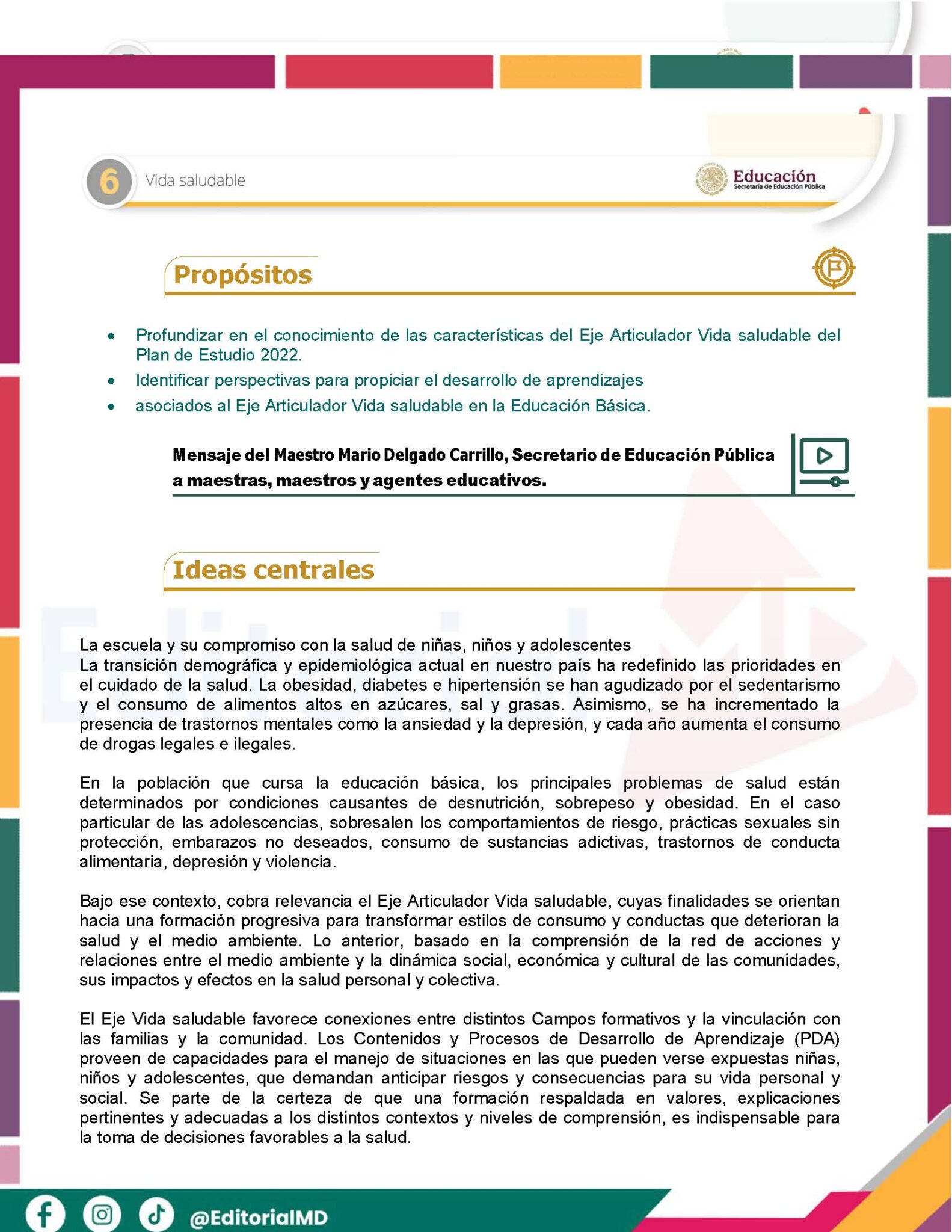 Analizar cómo el Eje Articulador Vida Saludable promueve una educación integral que vincula escuela, familia y comunidad en la formación de hábitos de vida activa, alimentación sana, autocuidado, educación integral en sexualidad y prevención de adicciones. Se busca que las y los docentes reconozcan su papel como promotores de bienestar físico, emocional y social en el marco de la Nueva Escuela Mexicana (NEM).