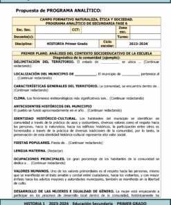 Programa analítico ANUAL con los planos: análisis del contexto socioeducativo de la escuela, contextualización y codiseño. Así mismo se anexa el perfil de egreso de las y los estudiantes de educación secundaria.