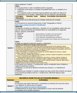 - Ya que es anual y se organiza por semana, contenido nacional (programa sintético), contenido contextualizado (editado a versión local), Procesos de Desarrollo de Aprendizaje que se impulsan, y sesiones en las que se trabajará.