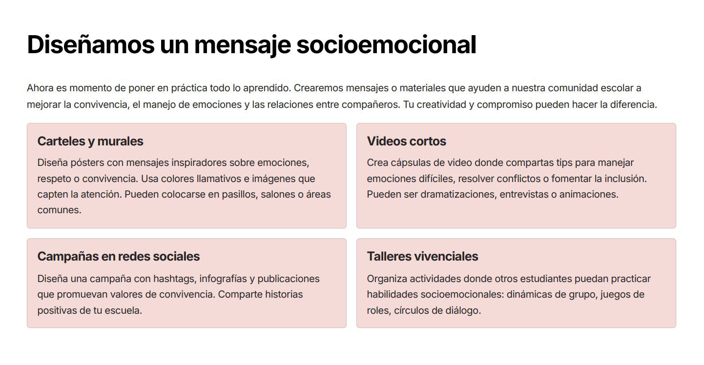 Cada recurso utiliza un lenguaje pedagógico claro, una estructura institucional, secuencias didácticas detalladas y estrategias formativas, alineadas al Plan de Estudios 2022 – Fase 6, permitiendo al docente ahorrar tiempo, fortalecer su planeación, documentar evidencias de aprendizaje y garantizar la coherencia pedagógica en el acompañamiento socioemocional del grupo.